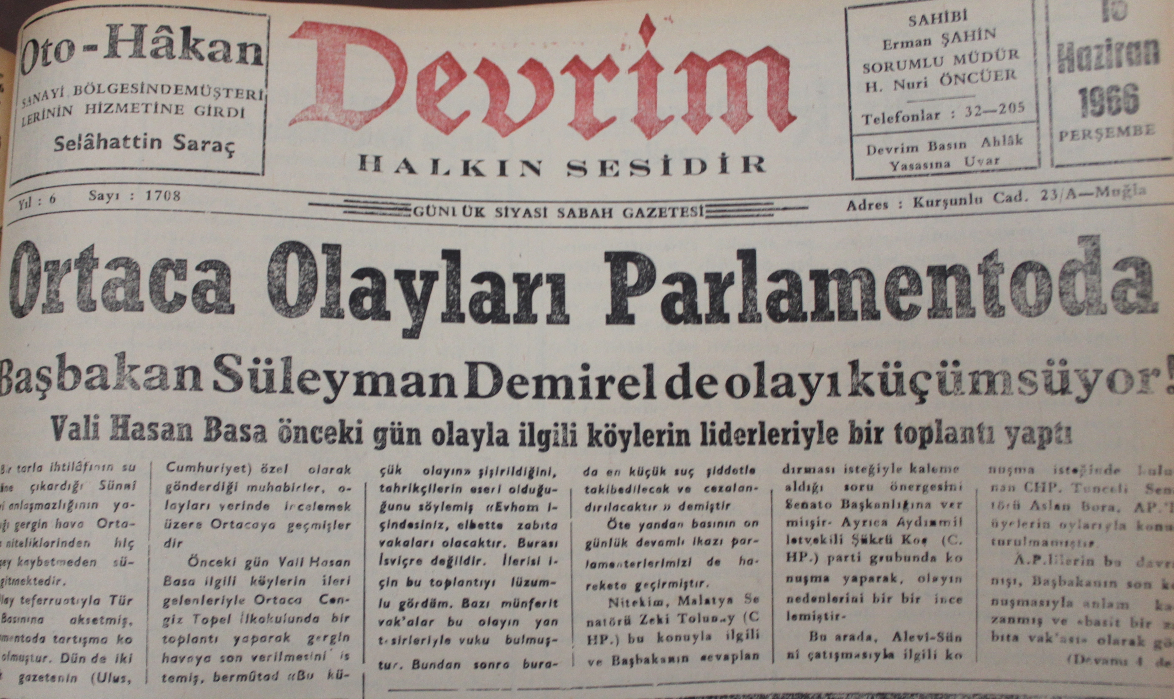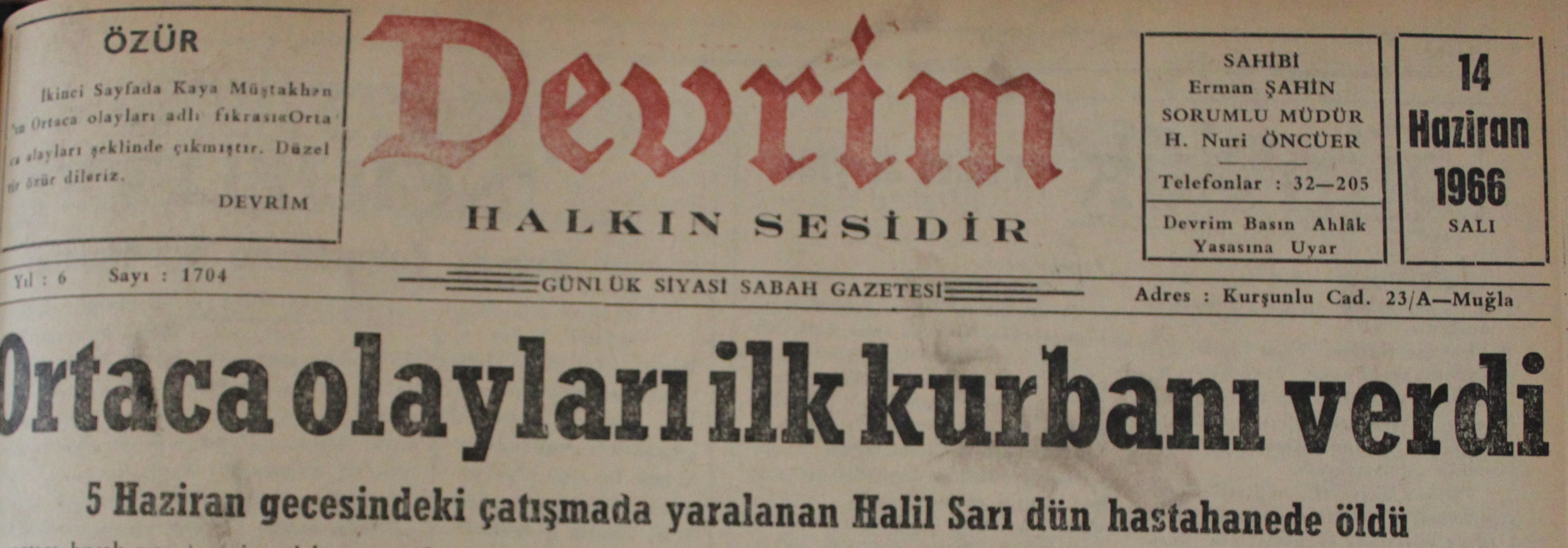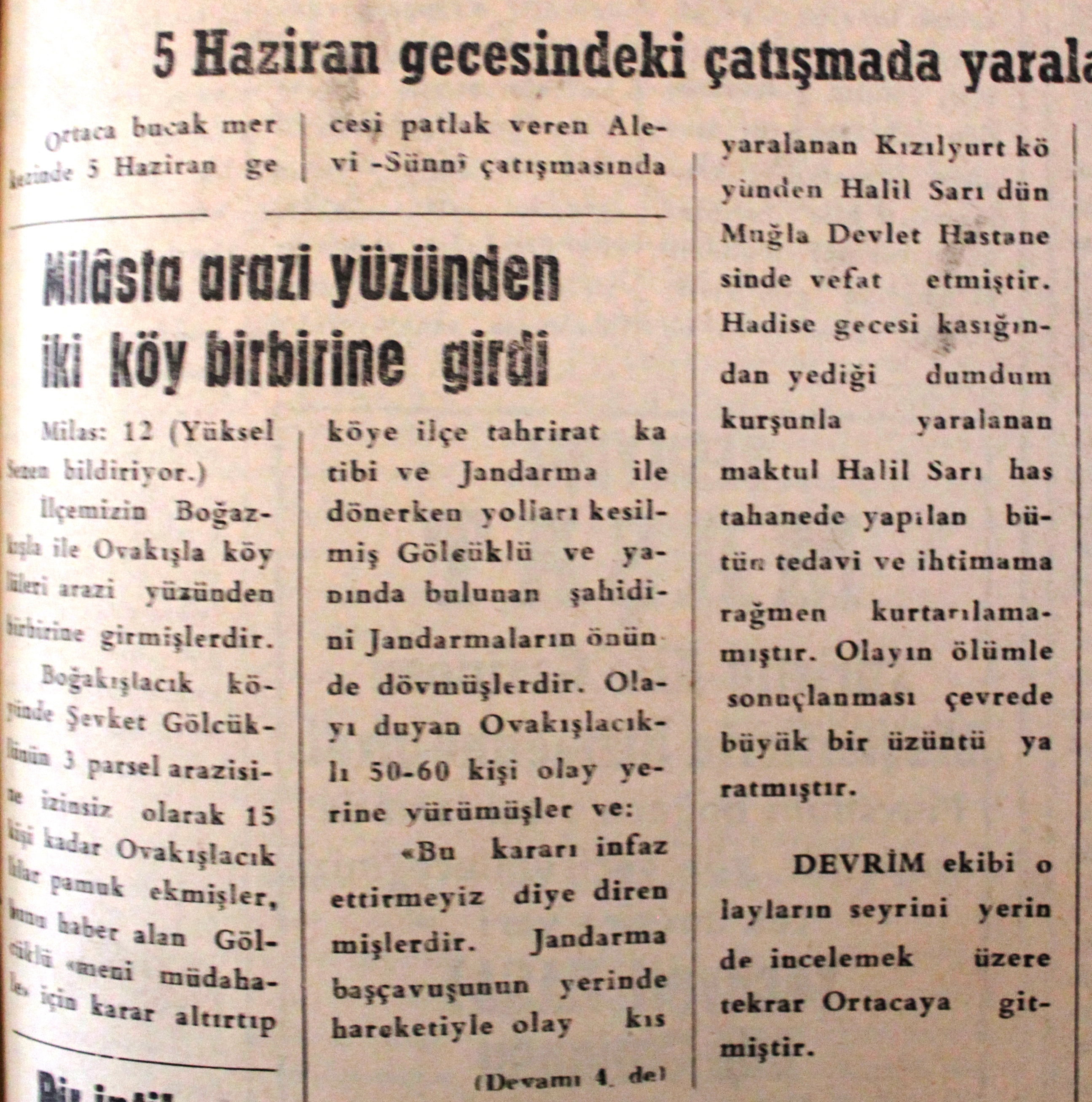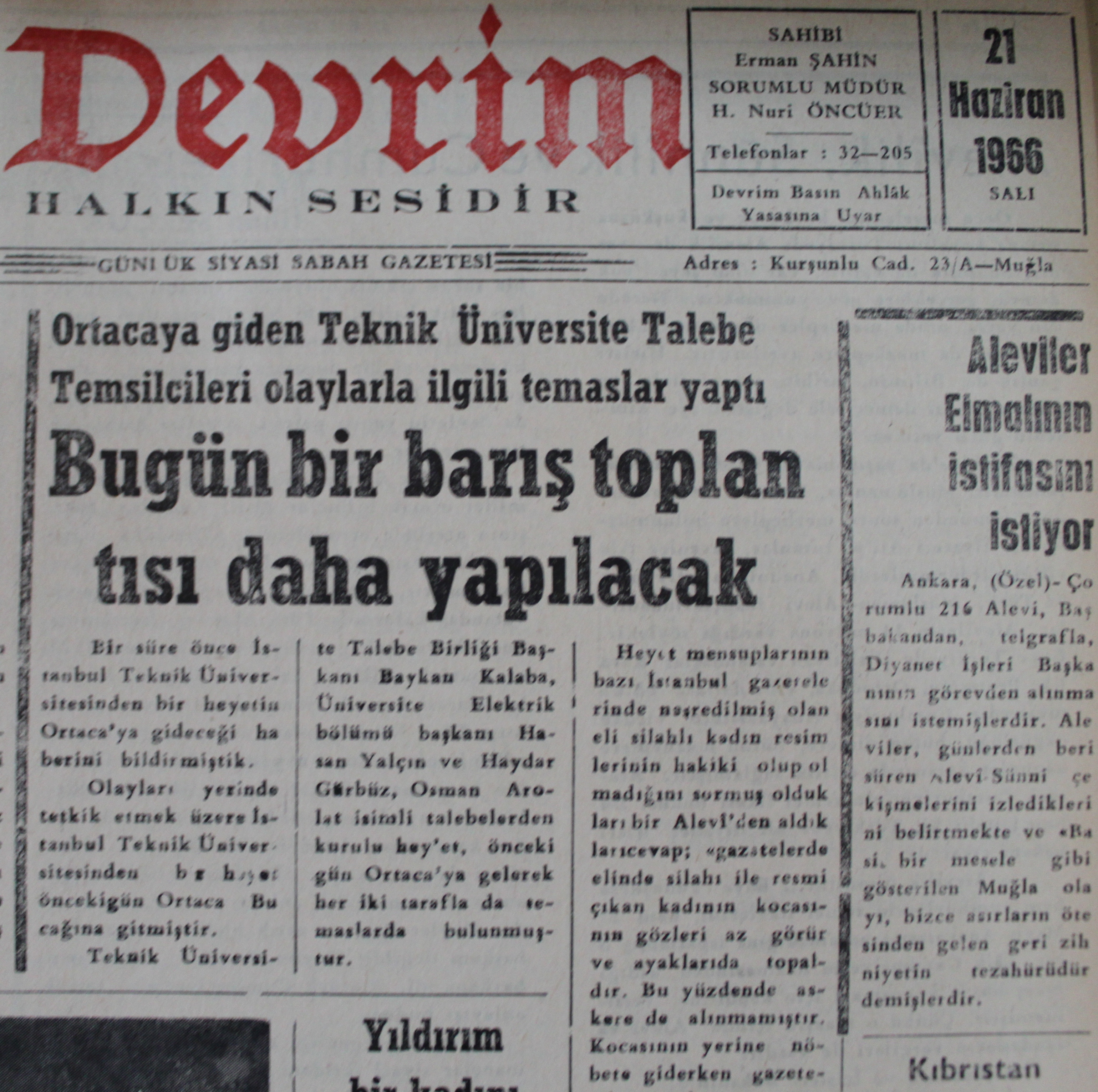 21 Haziran 1966 tarihli Devrim Gazetesi’nin sürmanşetine “Ortaca’ya giden Teknik Üniversite Talebe Temsilcileri olaylarla ilgili temaslar yaptı, bugün bir barış toplantısı daha yapılacak” başlığı atıldığını söyleyen Altın, “Bu başlığın altında özetle şunlar yazmaktadır: ‘Bir süre önce İstanbul Teknik Üniversitesi’nden bir heyetin Ortaca’ya gideceği haberini bildirmiştik. Olayları yerinde tetkik etmek üzere İTÜ’den bir heyet önceki gün Ortaca Bucağına gitmiştir. Teknik Üniversite Talebe Birliği Başkanı Baykan Kalaba, Üniversite Elektrik Bölümü Başkanı Hasan Yalçın, Haydar Gürbüz ve Osman Saffet Arolat isimli talebelerden kurulu heyet, önceki gün Ortaca’ya gelerek her iki tarafla da temaslarda bulunmuştur” dedi.