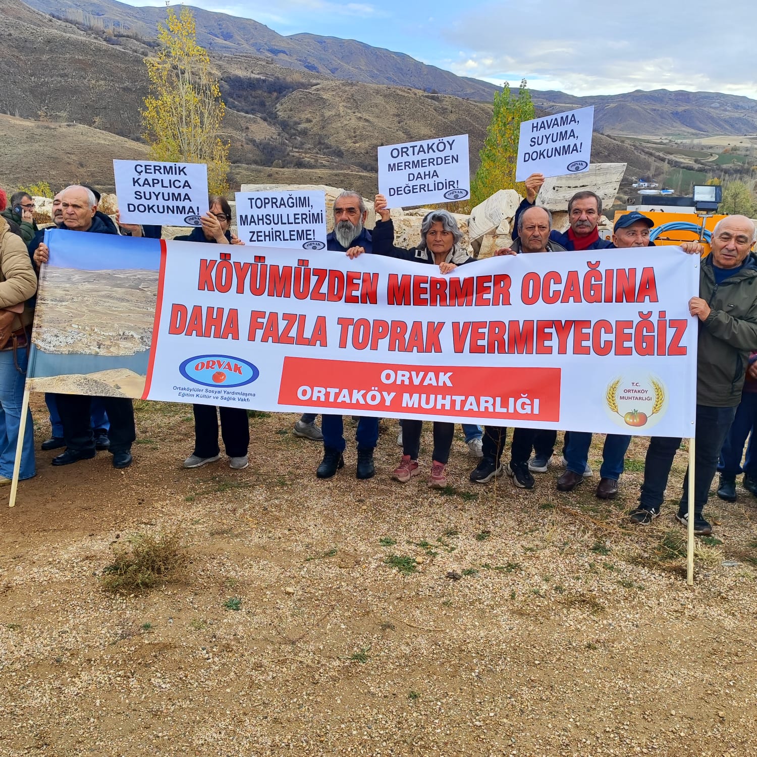 PİRHA – Aksaray’ın Ortaköy ilçesinde faaliyet gösteren Ata Madencilik ve Kuyumculuk A.Ş.’nin mermer ocağı işletmesini genişletmek istemesi köylülerin tepkisini topladı.Ortaköylüler Sosyal Yardımlaşma Kültür Sanat Eğitim ve Sağlık Vakfı (ORVAK) Yönetim Kurulu Üyesi Ergün Türkyılmaz, köylüler adına yaptığı basın açıklamasında “Köyümüzden mermer ocağına verilecek daha fazla toprak yok” dedi.