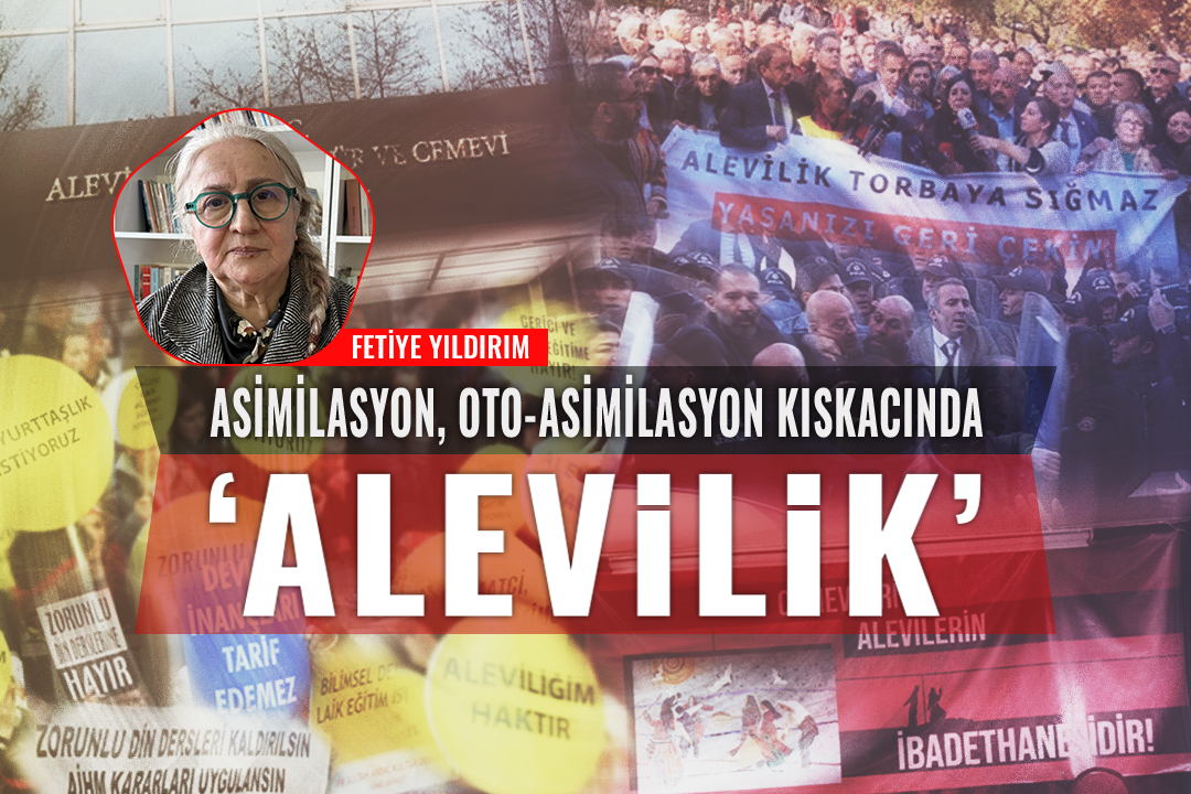 FETİYE YILDIRIM: Oto-asimilasyon zaten hani başka bir gücün yapmasına gerek kalmadan gerçekleşen bir durumdur. Kendi kendimizi asimile etme anlamına geliyor. Kendimizi ilkel gördük, inkar ettik, küçümsedik. Bu bireyselde olabilir, toplumsalda olabilir. Kendimizi inkar ederken de, ‘Biz Alevi değiliz, biz de Müslümanız’ gibi bir argüman geliştirerek, kendi inanç ve kültürümüzü, kendimizce inkar ettik.