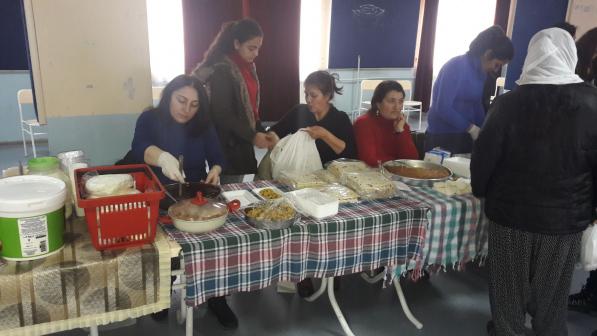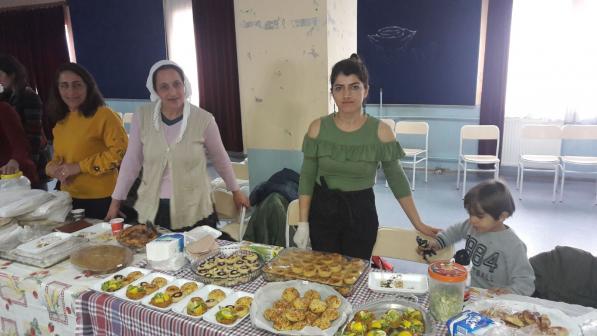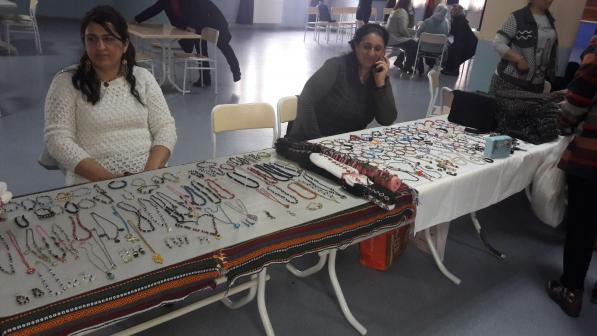 Etkinlikte ev emekçileri olan kadınların evlerinde kendi emeğiyle yaptıkları yöresel yiyecekler ile el emeği takı ve giyim ürünleri standlarda sergilendi.