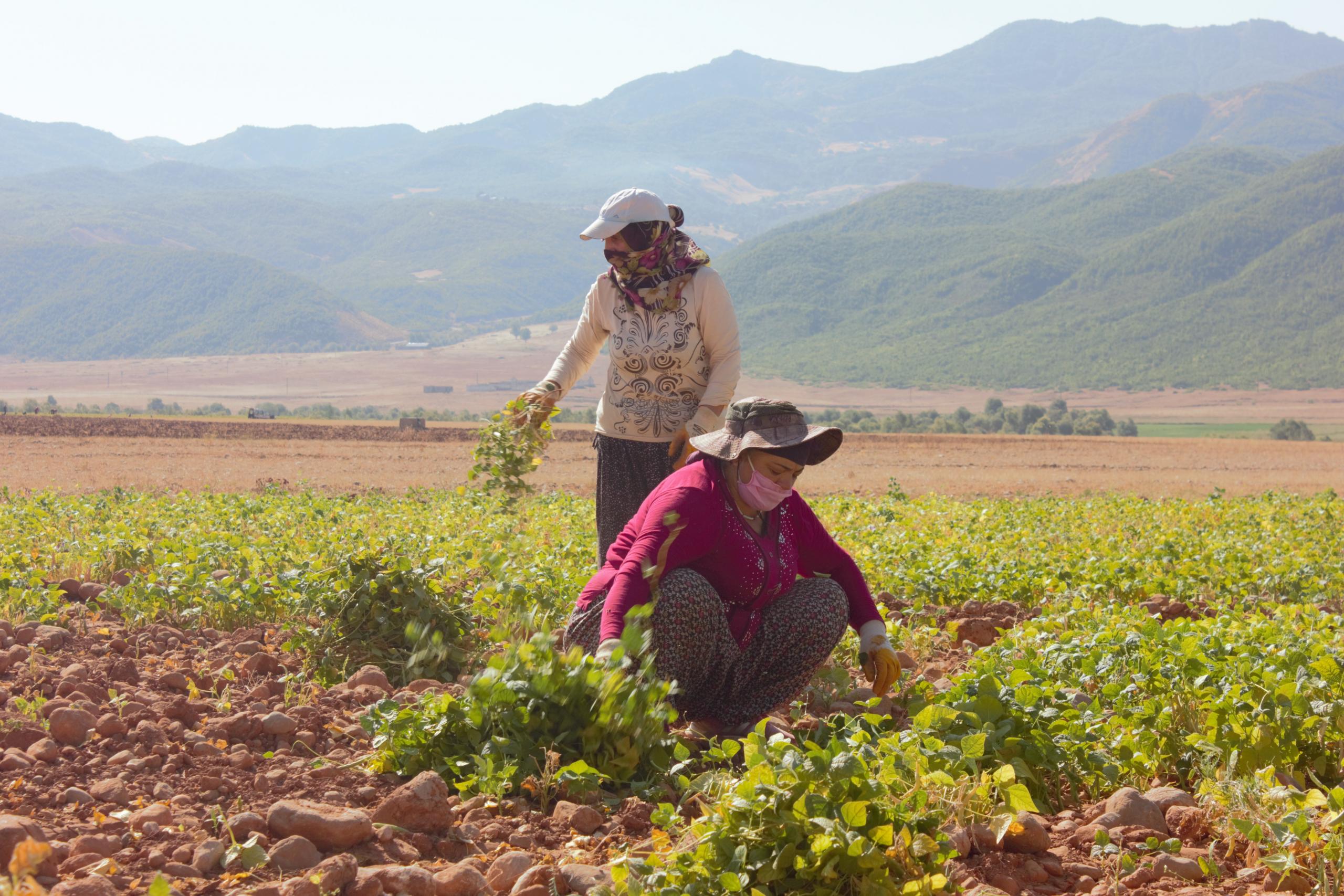 Fasulye biçerek ailesinin geçimine destek olduklarını söyleyen kadın tarım işçileri, yevmiyelerinin günlük 120 lira olduğunu ama daha fazla olması gerektiğini, çalışmak zorunda olduklarını çünkü başka bir gelirleri olmadığını kaydettiler.