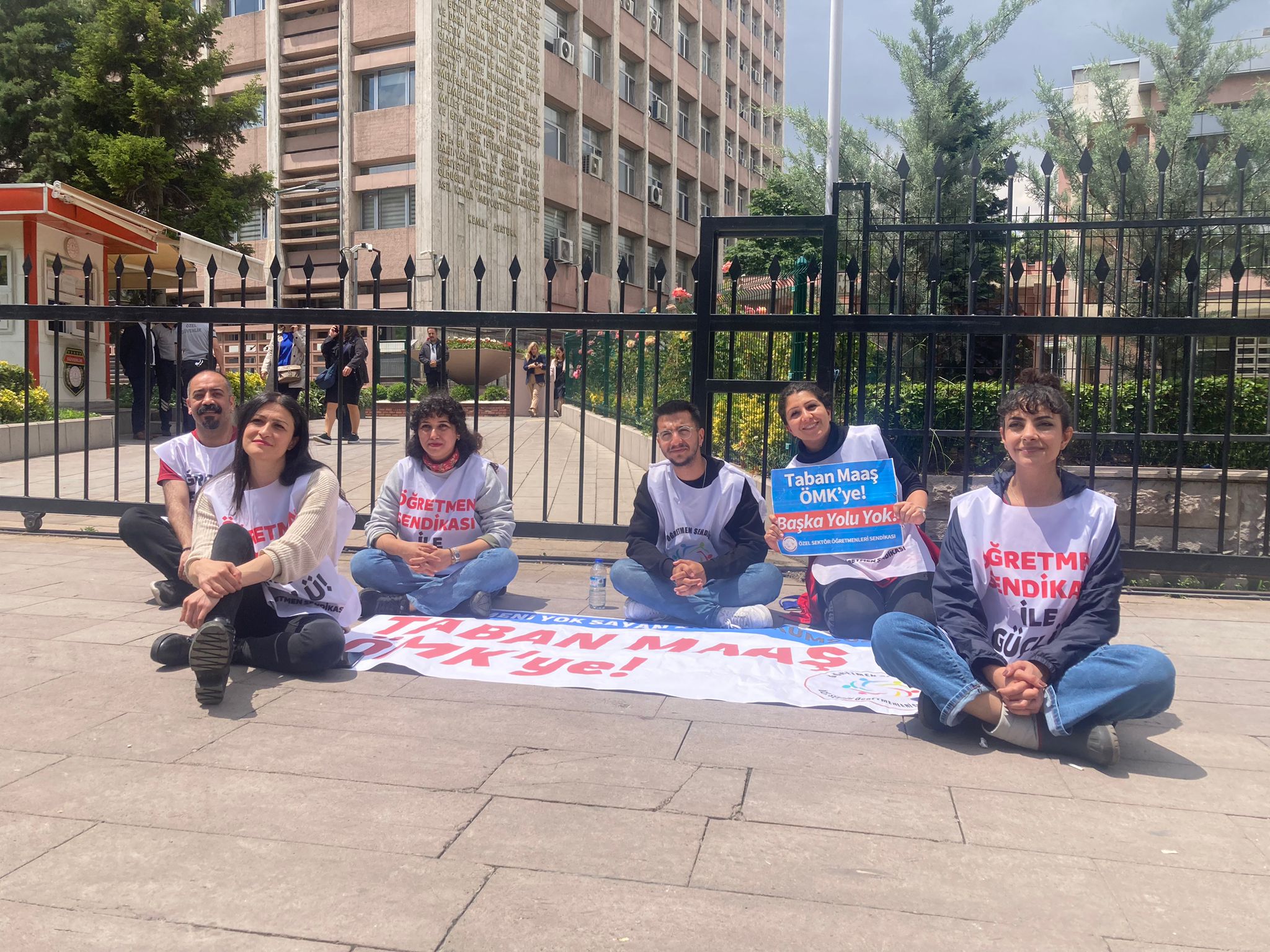 MEB önünde yapılan oturma eyleminde sendika, haklı taleplerini Milli Eğitim Bakanlığı’nın yerine getirmediğini belirterek, “Öğretmen Meslek Kanunu’nda taban maaş haklarımızın yer almasını istiyoruz. Bizim hakkımızı o kanuna koymazsanız, bileceğiz ki siz bizi asgari ücretle sömürü altında yalnız bırakıyorsunuz. Yusuf Tekin bizim asgari ücret ile çalışmamızı istiyorsa kendisi de bu ücreti almalıdır. Öğretmenler olarak insanca yaşam koşulları istiyoruz” dedi.