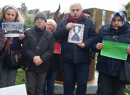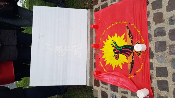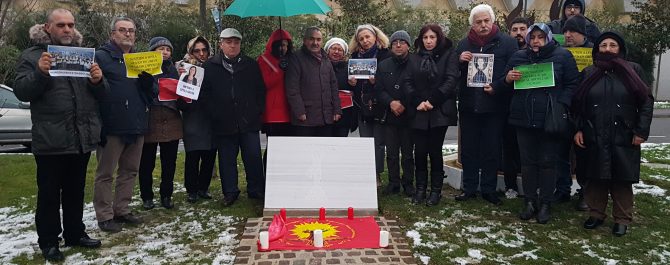 Paris’te Aleviler, süresiz-dönüşümsüz açlık grevlerine destek vermek amacıyla Pir Sultan Abdal Derneği tarafından Paris’in Sarcelles Banliyösü’nde yapılan Alevi Anıtı’nın önünde bir açıklama yaptı.