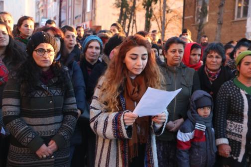 Açıklamayı Pertekli kadınlar adına Aytuna Kara okudu. Kara cinsel istismar vakalarını öfkeyle takip ettiklerini belirterek, “Biz Pertekli kadınlar olarak bu olayların sistematik olduğunu bilerek kadınlara ve çocuklara yönelik işlenen suçların yargılamalarının mağduru koruyacak şekilde ve suçları halktan ve kadınlardan kaçırmayacak gizlemeyecek özellikte yapılamasını ve yargılamaların kadın ve çocuk hakları örgütlerine açılmalasını talep ediyoruz” ifadelerini kullandı.