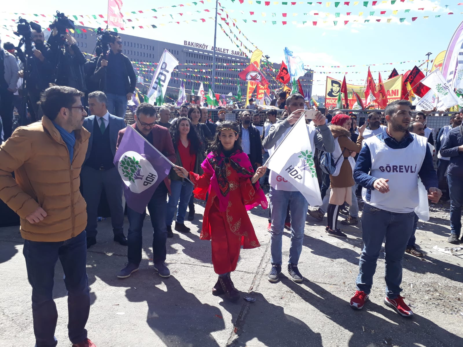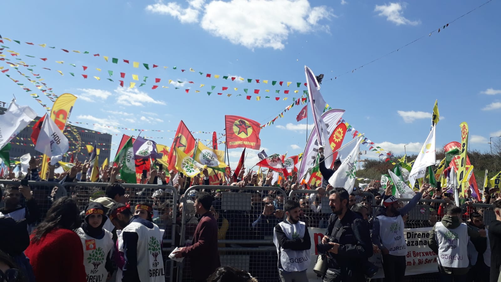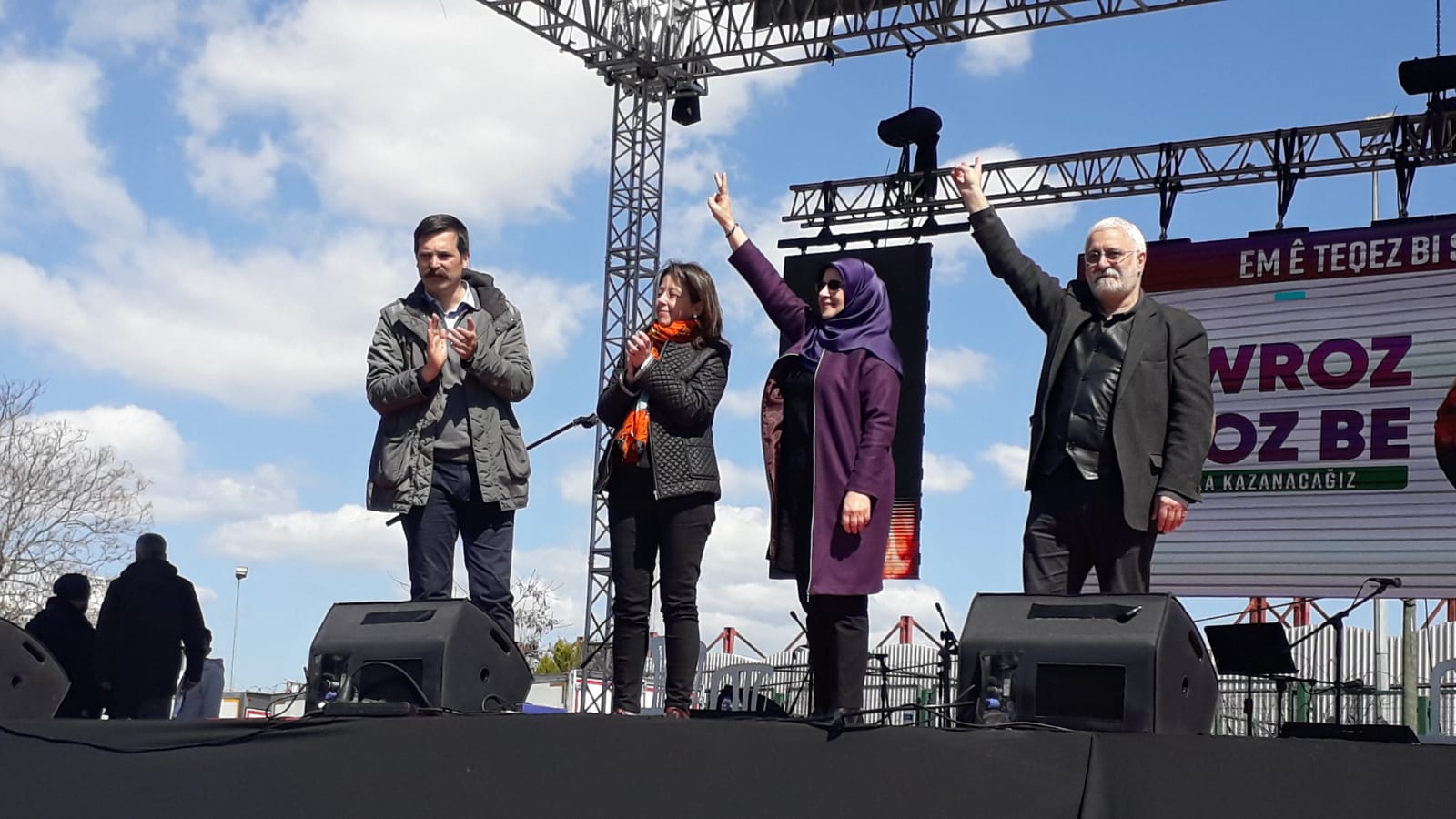 “Yaşar Kemal ne demiş? Bir bahçede hep aynı çiçek olmaz. Hep aynı çiçek olursa hiç güzel olmaz. O bahçede tüm renkleri ve farklı kokularıyla çiçekler kalsın. İşte İstanbul farklı renk, kimlik ve sesiyle, kadınıyla, genciyle, yaşlısıyla, Türküyle, Kürdüyle bu meydanda bir arada. Hepiniz baş göz üstüne geldiniz. Halay ve horonlarımız bugün bir arada. Sizlere Amed’den binlerce selam getirdim. Sizlere Leyla Güven’den selam getirdim. Bugün cezaevlerinde olan tüm yoldaşlarımızın selamını getirdim. Newroz halkların özgürlük ve barışı paylaştığı ve haykırdığı bir gündür. Bu irade Amed Newroz’unda açığa çıktı. Tam da şimdi zamanı olduğu gibi haykırdılar. 1 Kasım ve 24 Haziran’da olduğu gibi 31 Mart’ta kendisini bir kez daha gösterecek. Milyonlara söz veriyorum. Berkinlerin, Kemal Korkutların hayalindeki özgürlük ülkesini faşizme inat hep birlikte yaratacağız. Bizler kutuplaşmaya değil kucaklaşmaya, nefrete değil sevgiye, esarete değil özgürlük ve bu ülkede yaratılmak istenen faşizme karşı 31 Mart tarihinde sandıklara giderken geleceğimiz için mutlaka özgür bir Türkiye’de yaşayacağımızı ispat edeceğiz. Tarih boyunca zafer hep direnenlerin olmuştur. Mazlumun ahı indirir şahı. Ezilenler olarak, bu ülkede her gün öldürülen kadınlar olarak, toprağın altına düşen gençler olarak geleceğimiz için mutlaka ama mutlaka 31 Mart tarihinde büyük bir ders vereceğiz.