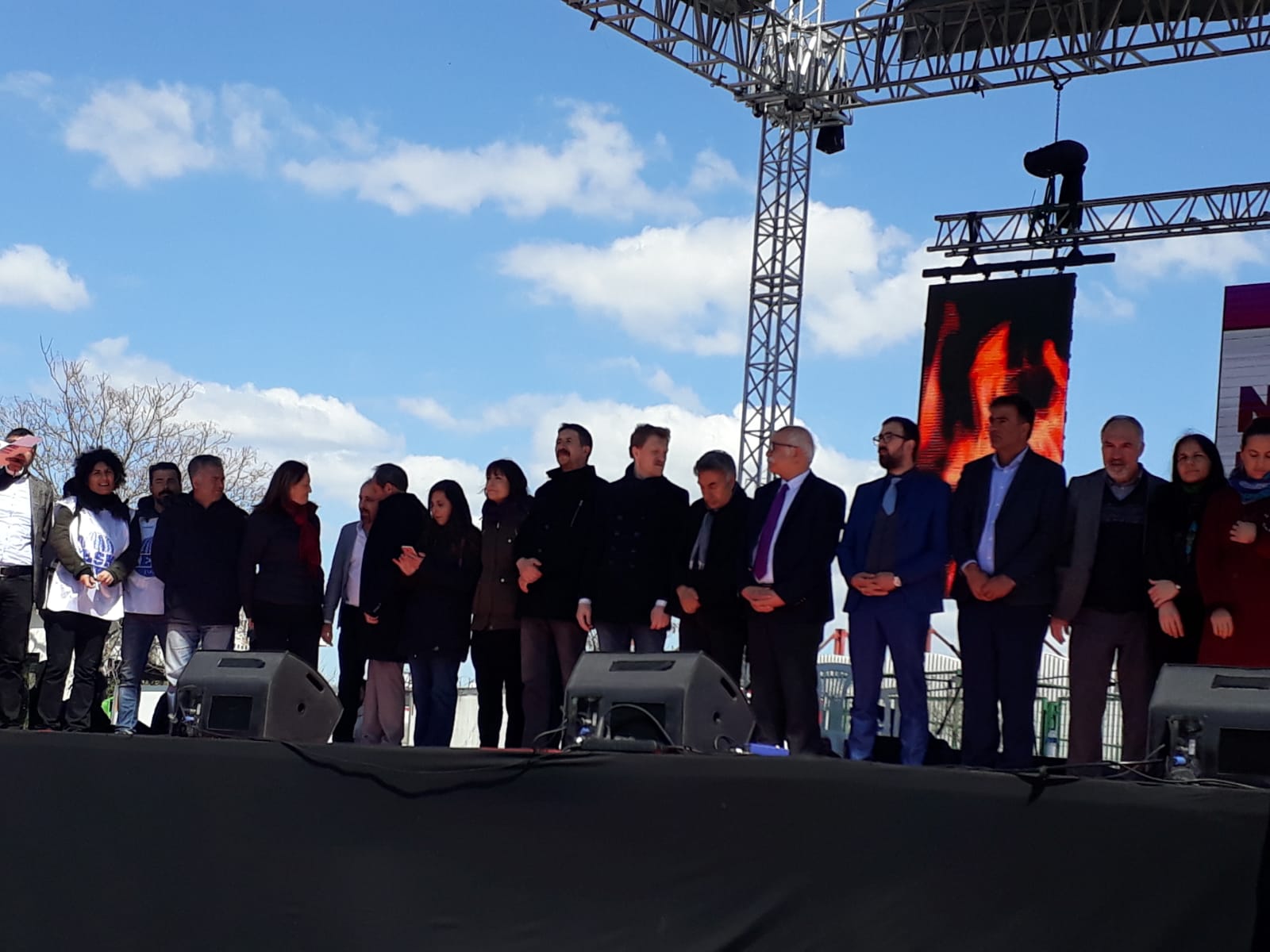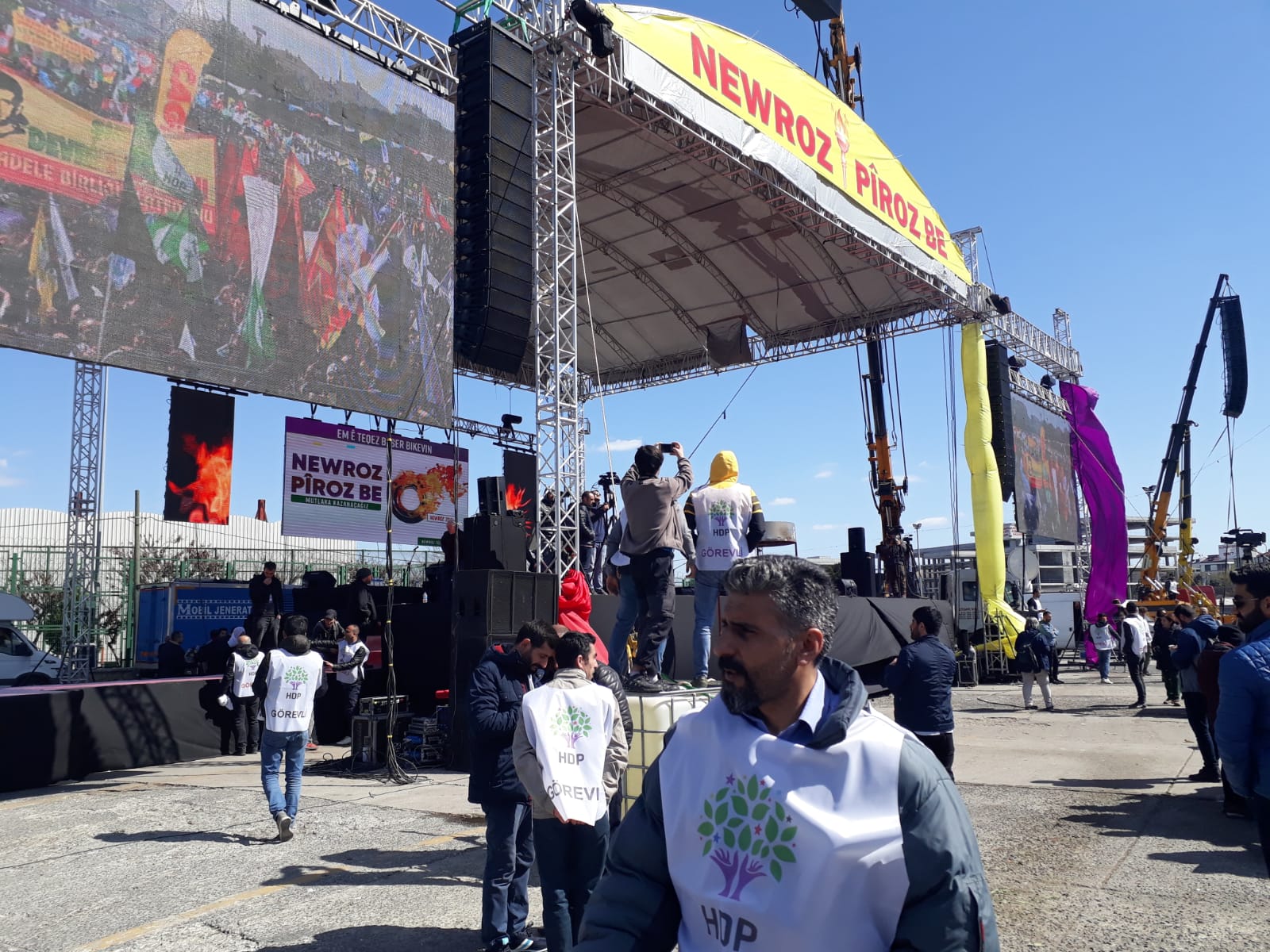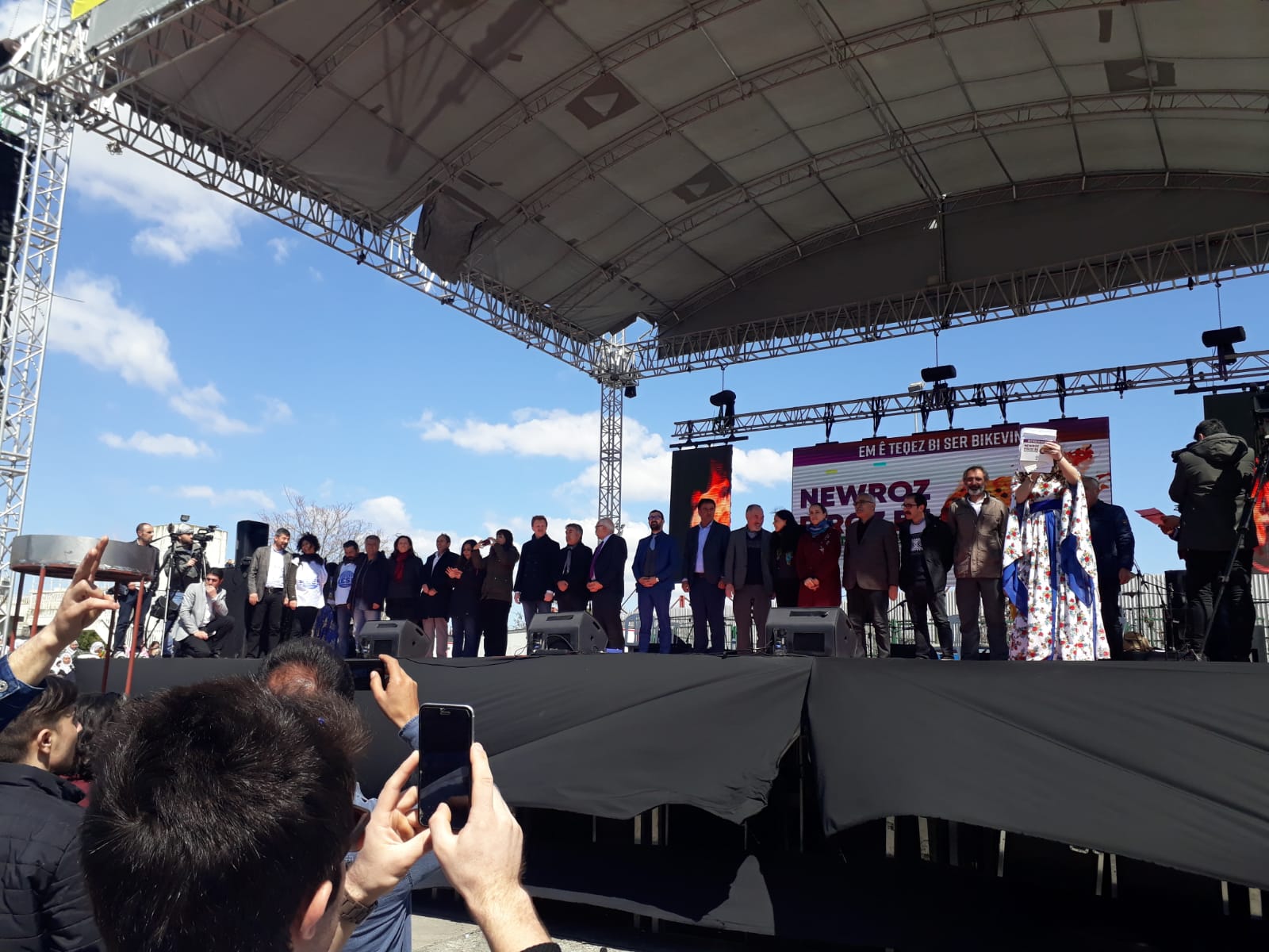 “Yaşar Kemal ne demiş? Bir bahçede hep aynı çiçek olmaz. Hep aynı çiçek olursa hiç güzel olmaz. O bahçede tüm renkleri ve farklı kokularıyla çiçekler kalsın. İşte İstanbul farklı renk, kimlik ve sesiyle, kadınıyla, genciyle, yaşlısıyla, Türküyle, Kürdüyle bu meydanda bir arada. Hepiniz baş göz üstüne geldiniz. Halay ve horonlarımız bugün bir arada. Sizlere Amed’den binlerce selam getirdim. Sizlere Leyla Güven’den selam getirdim. Bugün cezaevlerinde olan tüm yoldaşlarımızın selamını getirdim. Newroz halkların özgürlük ve barışı paylaştığı ve haykırdığı bir gündür. Bu irade Amed Newroz’unda açığa çıktı. Tam da şimdi zamanı olduğu gibi haykırdılar. 1 Kasım ve 24 Haziran’da olduğu gibi 31 Mart’ta kendisini bir kez daha gösterecek. Milyonlara söz veriyorum. Berkinlerin, Kemal Korkutların hayalindeki özgürlük ülkesini faşizme inat hep birlikte yaratacağız. Bizler kutuplaşmaya değil kucaklaşmaya, nefrete değil sevgiye, esarete değil özgürlük ve bu ülkede yaratılmak istenen faşizme karşı 31 Mart tarihinde sandıklara giderken geleceğimiz için mutlaka özgür bir Türkiye’de yaşayacağımızı ispat edeceğiz. Tarih boyunca zafer hep direnenlerin olmuştur. Mazlumun ahı indirir şahı. Ezilenler olarak, bu ülkede her gün öldürülen kadınlar olarak, toprağın altına düşen gençler olarak geleceğimiz için mutlaka ama mutlaka 31 Mart tarihinde büyük bir ders vereceğiz.