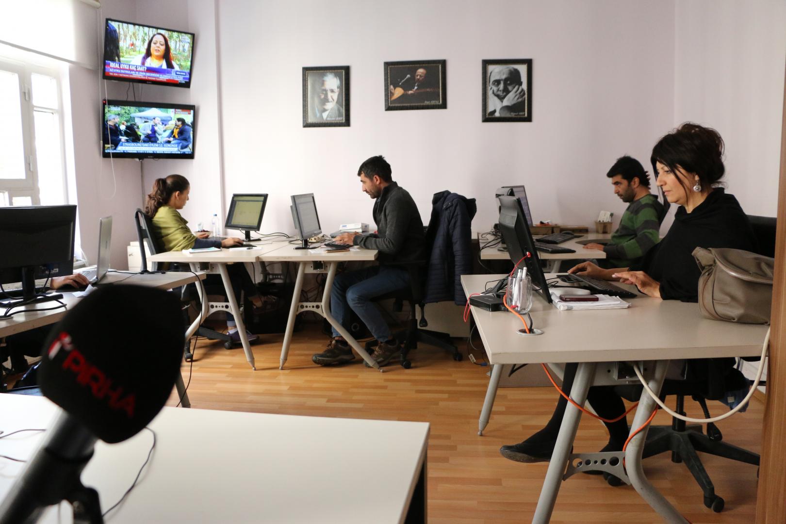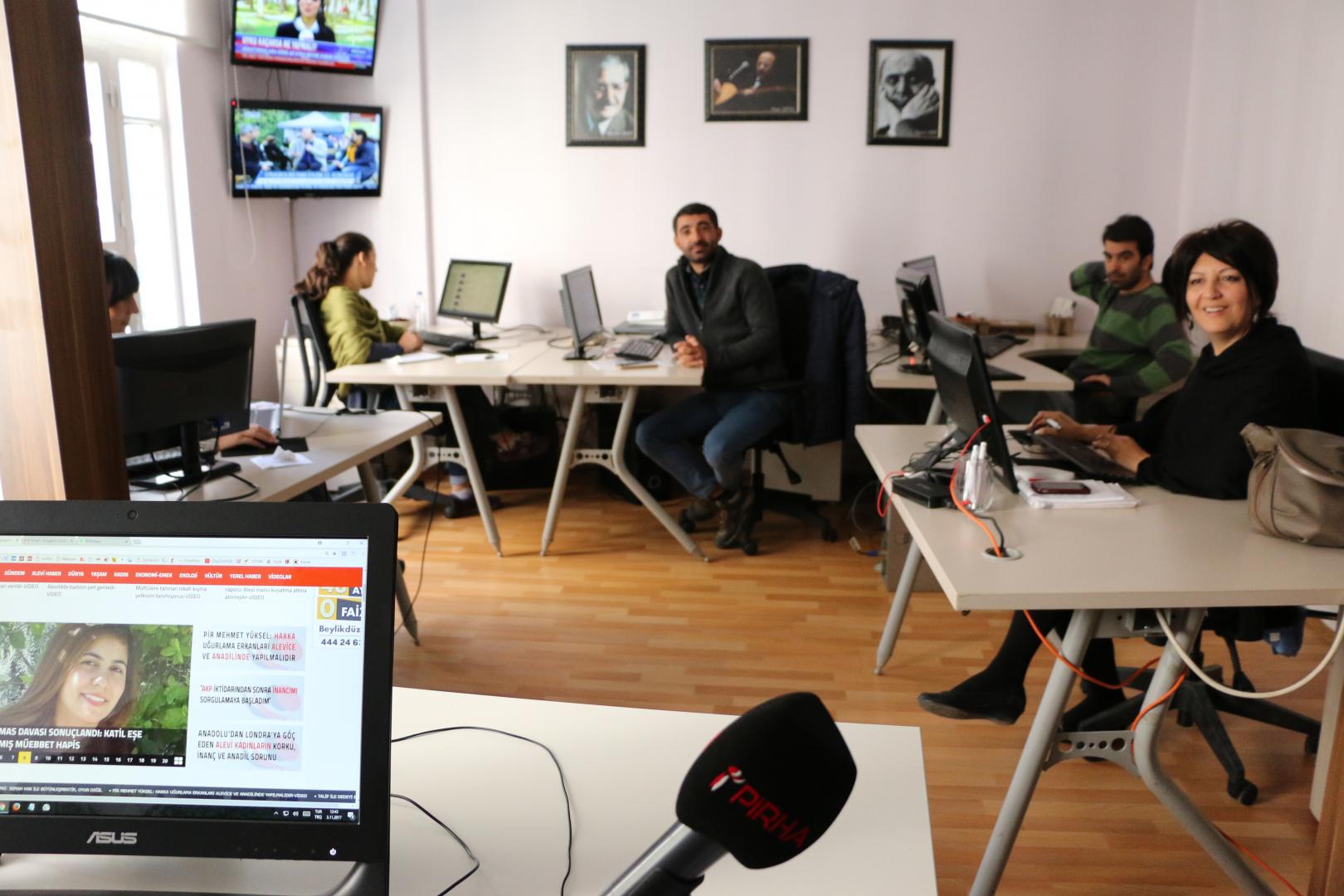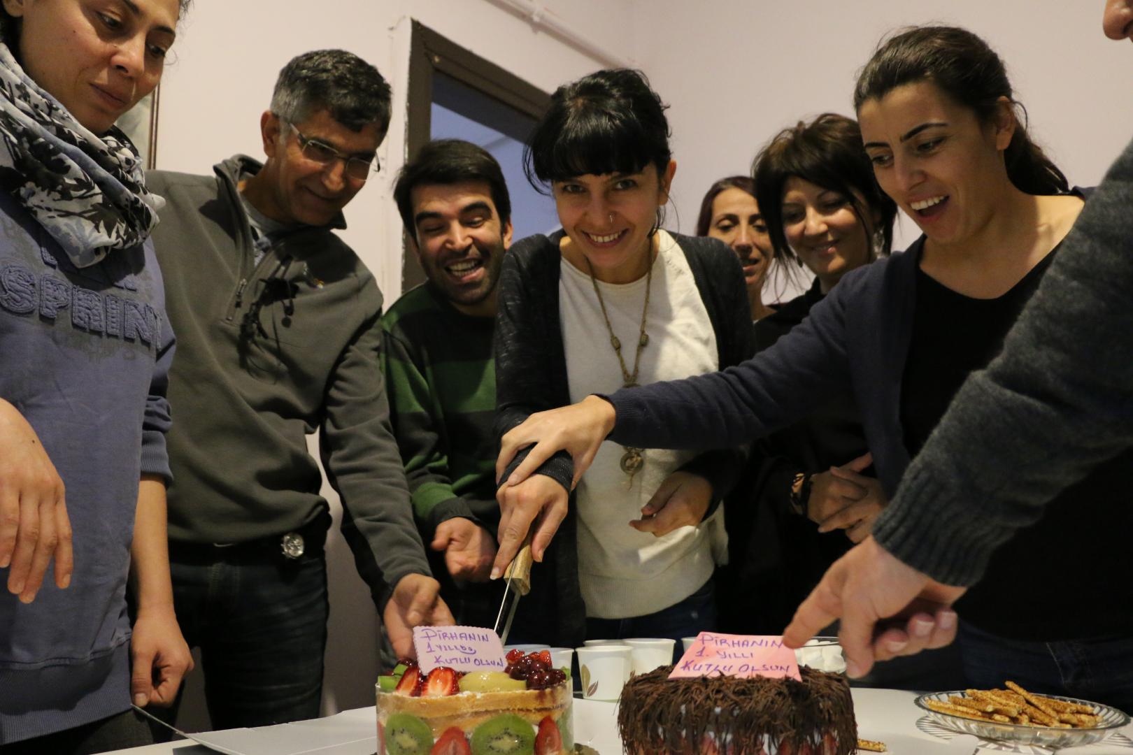 Pir Haber Ajansı (PİRHA) birinci yılında. Çalışanlar ofiste ajansın birinci yılını kutladı.