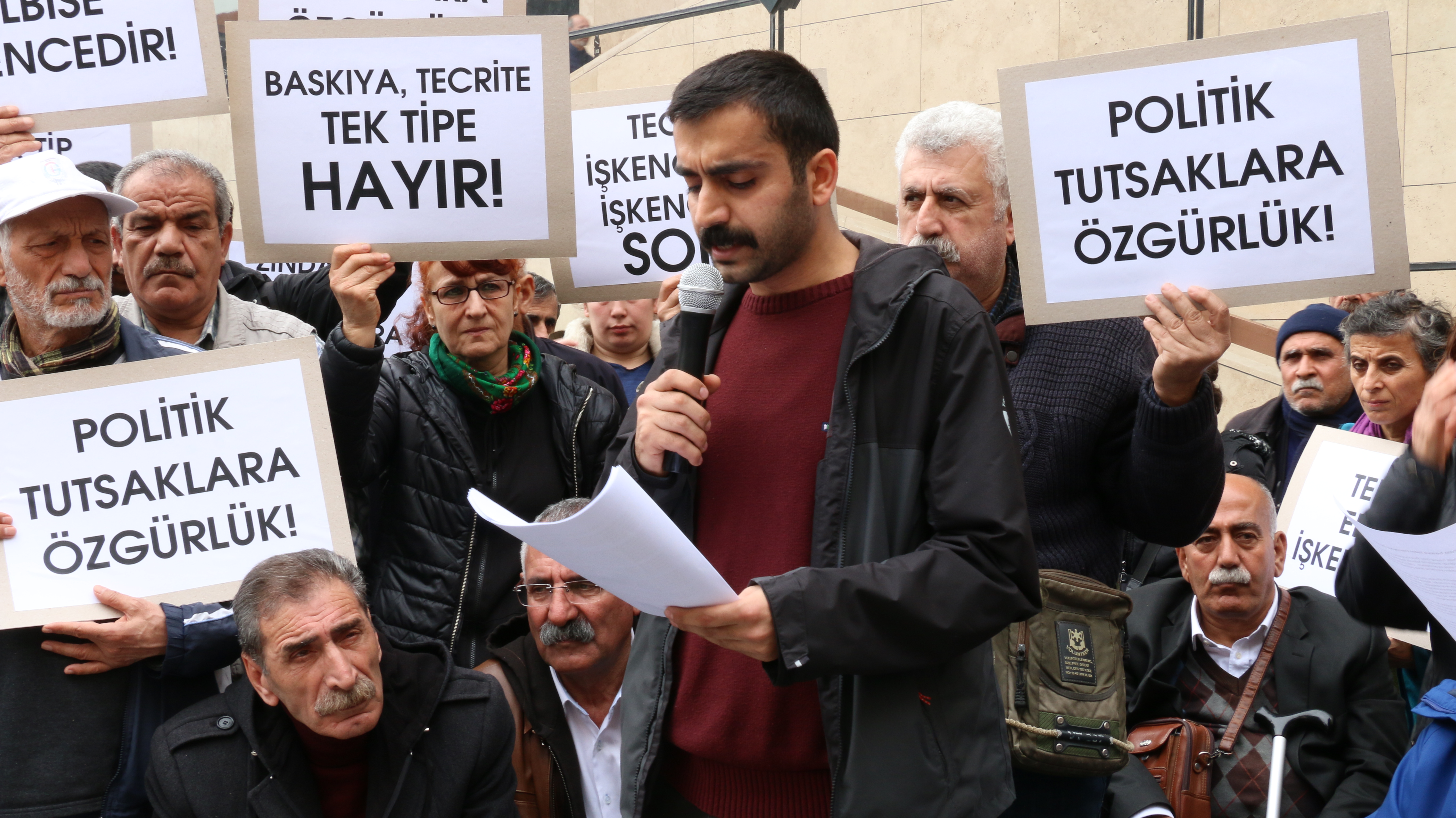 Basın açıklamasını Tutsaklarla Dayanışma İnisiyatifi Sözcüsü Abdülmelik Yalçın yaptı. “18 Mart Uluslararası Politik Tutsaklar Günü”nün 1923 yılından bugüne her yıl uluslararası alanda politik tutsakların sorunlarına dikkat çekmek ve yaşanan saldırıları teşhir etmek için ele alındığını belirten Yalçın, “Başta Türkiye ve Kürdistan olmak üzere tüm dünyada; düşünen, eleştiren ve mücadele eden tüm insanlara yönelik yoğun bir saldırı söz konusudur. İktidarlar her türlü isyanı ve sesi bastırmak için toplumun en dinamik güçlerini hedef almaktadır. ‘Başka bir dünya mümkün’ diyerek kapitalist ve Sömürgeci iktidarlara biat etmeyenleri sanki birer hasta ve suçluymuş gibi ‘ıslah ve rehabilite’ etme planlarıyla hücrelere atarak tasfiye etmeyi planlamakta; insan haklarını ve insanlık onurunu hiçe sayan uygulamalar ve yaptırımlarla politik tutsakları düşüncelerinden ve kişiliklerinden vazgeçmeye zorlamaktadırlar” diye konuştu.