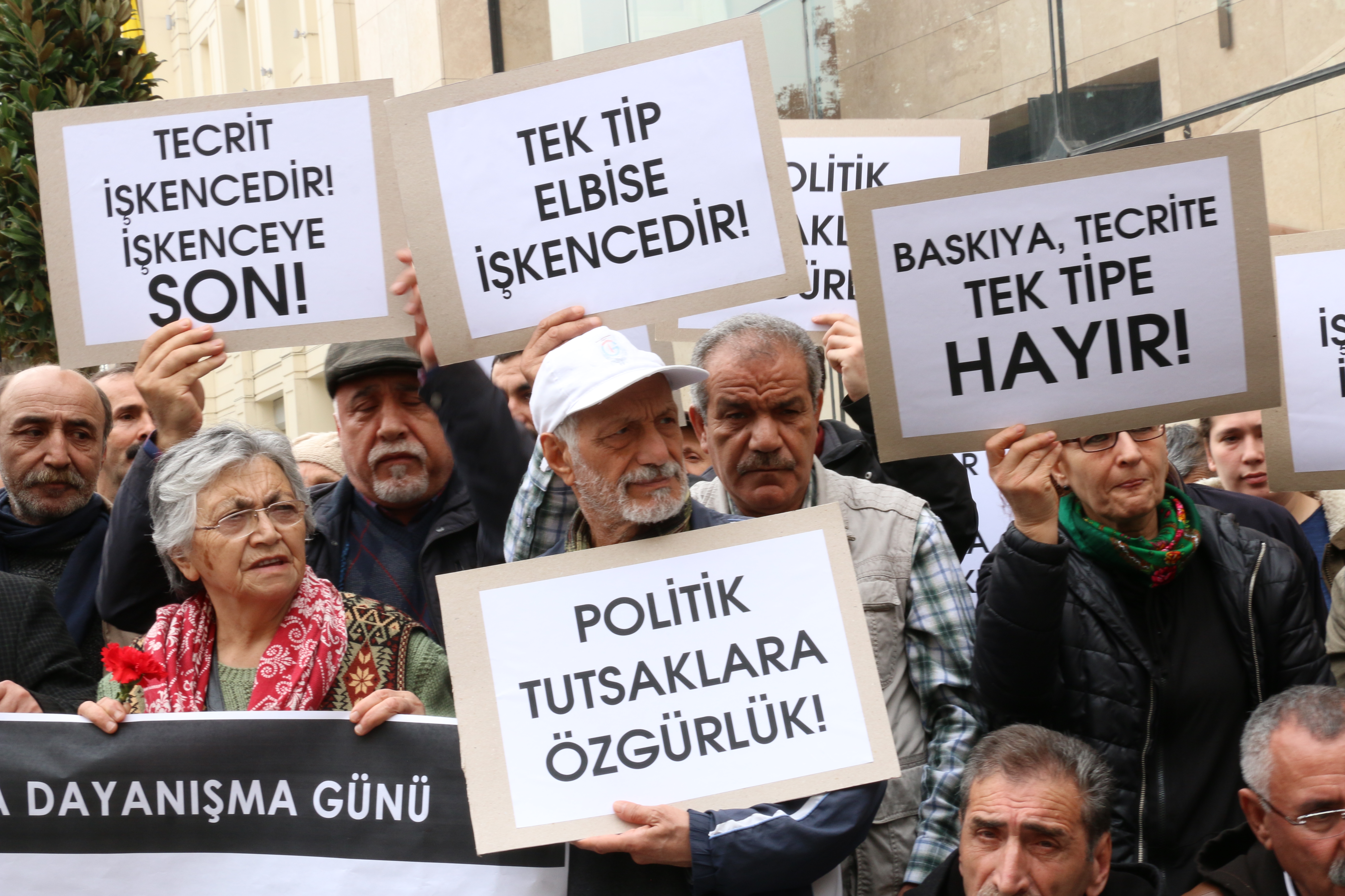 Galatasaray Meydanı’nda yapılan açıklamaya Devrimci Parti Genel Başkanı Musa Piroğlu ve çok sayıda kişi katıldı. “Politik tutsaklara özgürlük” pankartı taşınan açıklamada, “Tecrit işkencedir işkenceye son”, “Politik tutsaklara özgürlük”, “Baskıya, tecrite tek tipe hayır” ve “Tek tip elbise işkencedir” dövizleri taşındı. Açıklamada sık sık “Politik tutsaklar teslim alınamaz” ve “Yaşasın enternasyonal dayanışma” sloganları atıldı.