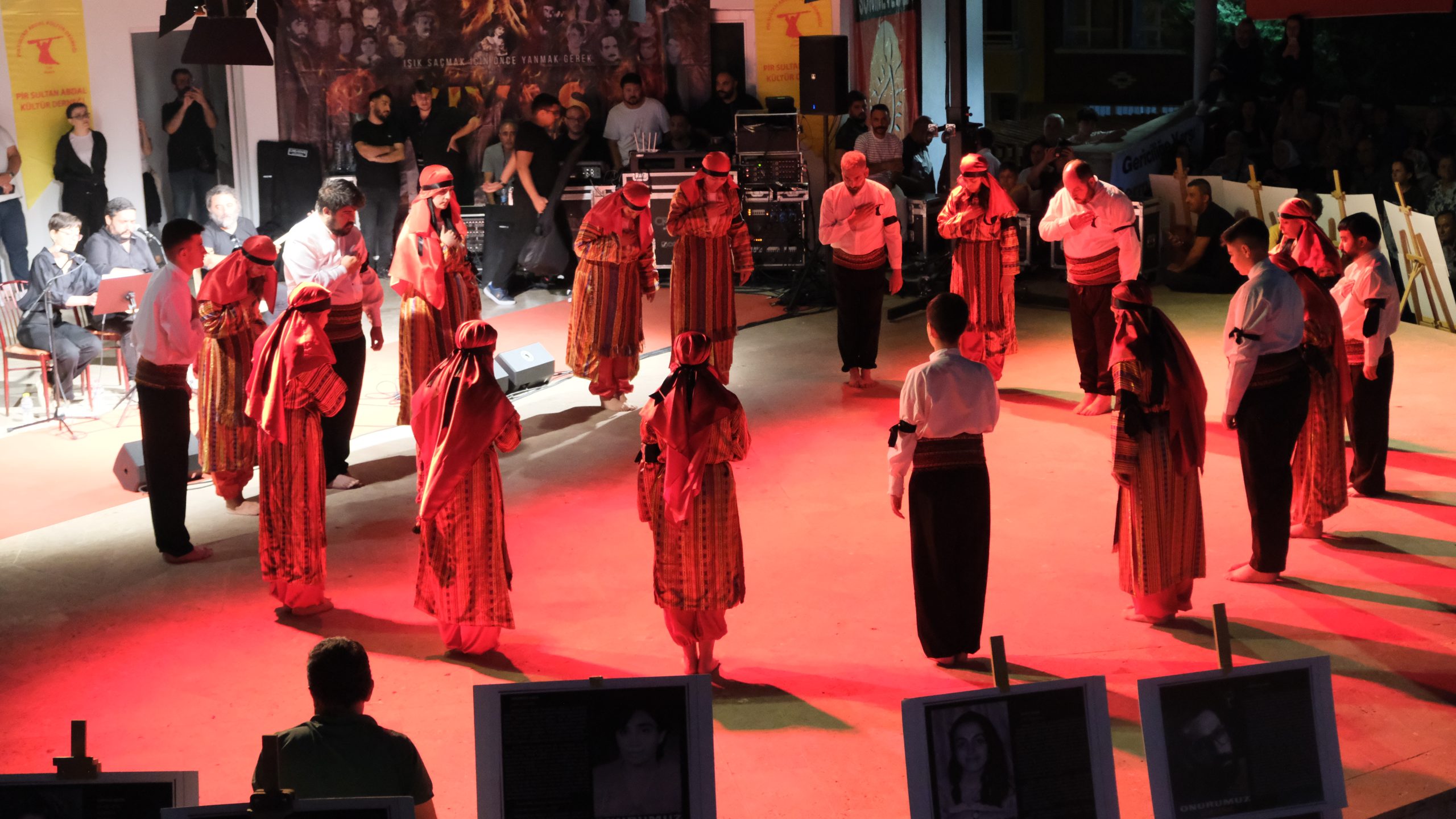 Yapılan konuşmaların ardından semahlar dönüldü. Erdal Erzincan, Mercan Erzincan, Gökhan Kılıç, Murat Gültekin, Onur Biçer katliamda yaşamını yitirenler anısına ezgiler seslendirdi.
