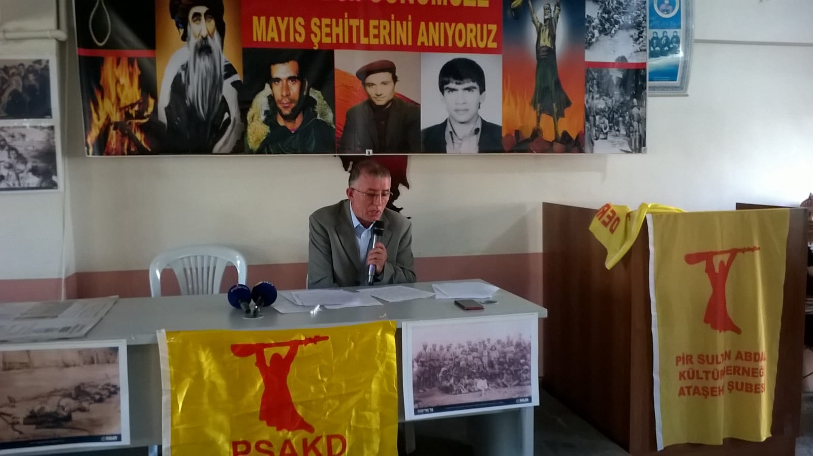 PİRHA-PSAKD Ataşehir Şubesi tarafından, “37 Dersim’den 77 Taksim’e Mayıs şehitlerini anıyoruz” şiarıyla Mayıs ayında yaşamını yitiren canlar için anma yapıldı. Anmada konuşan PSAKD Ataşehir Şube Başkanı Hasan Gülüm, “Dersim’de Alevilik inancı ve kültürü katledilmiştir.” dedi.