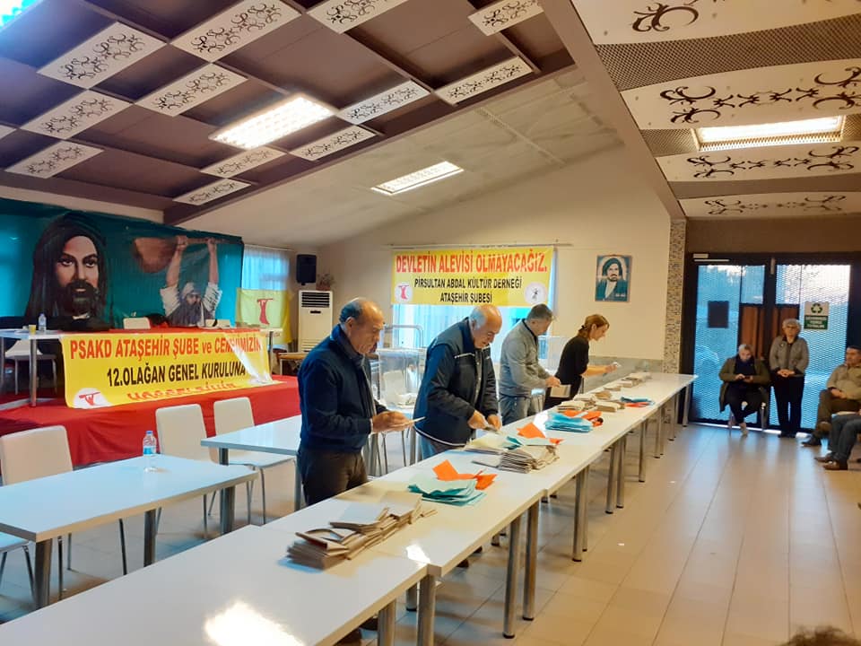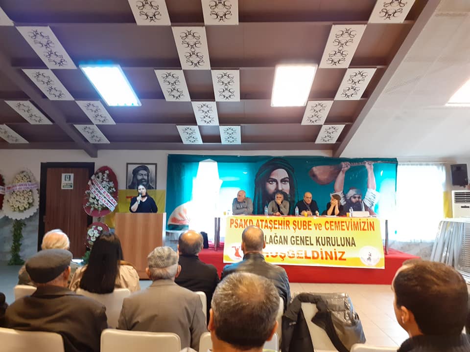 Pir Sultan Abdal Kültür Derneği (PSAKD) Ataşehir Şubesi 12. Olağan Genel Kurulu’nu dün gerçekleştirdi. Genel kurulun yapıldığı salona, “Devletin Alevisi olmayacağız”, “Krize, şiddete, baskılara karşı gelin kadınlar birlik olalım”, “Alevi canlarımız ve Pir Sultan dostları serbest bırakılsın” yazılı pankartlar asıldı.
