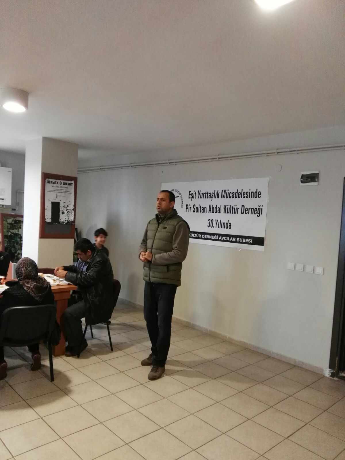 PSAKD Avcılar Şube Başkanı Hüseyin Ağçal kısa bir konuşma yaptı. Diyanetin fetvalarına dikkat çeken Ağçal, Hüseyni bir duruş sergilemek gerektiğini vurguladı.