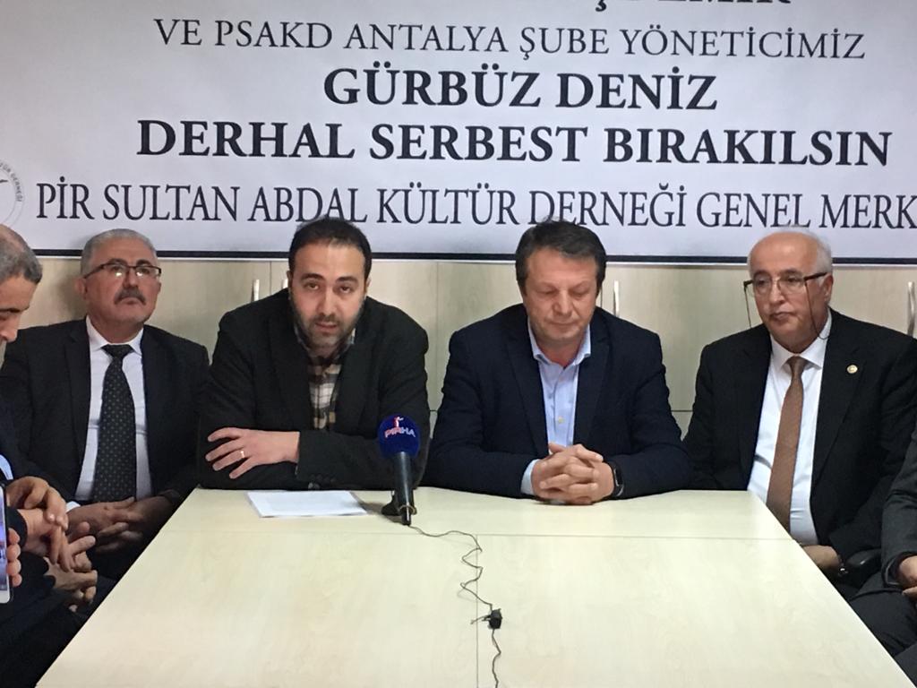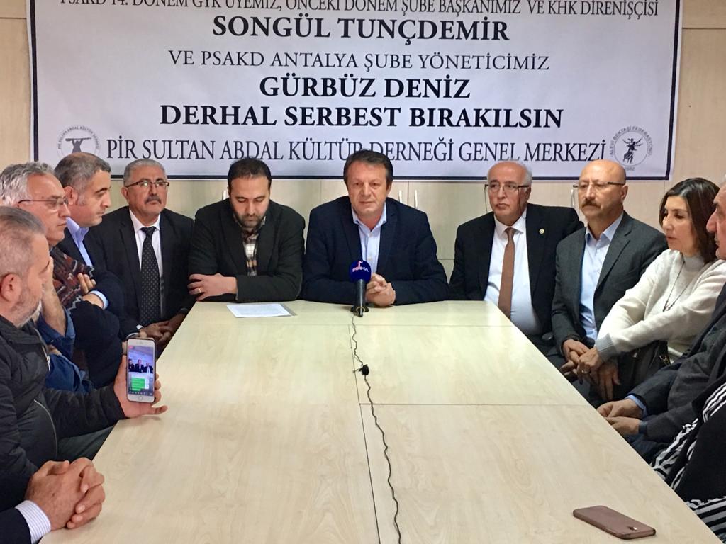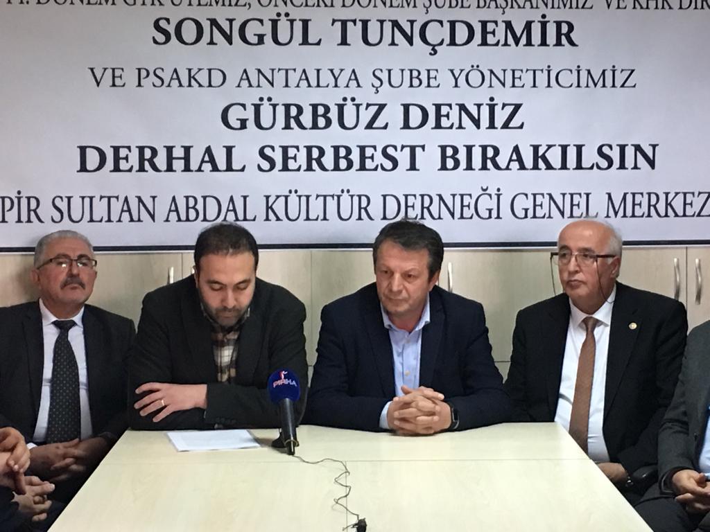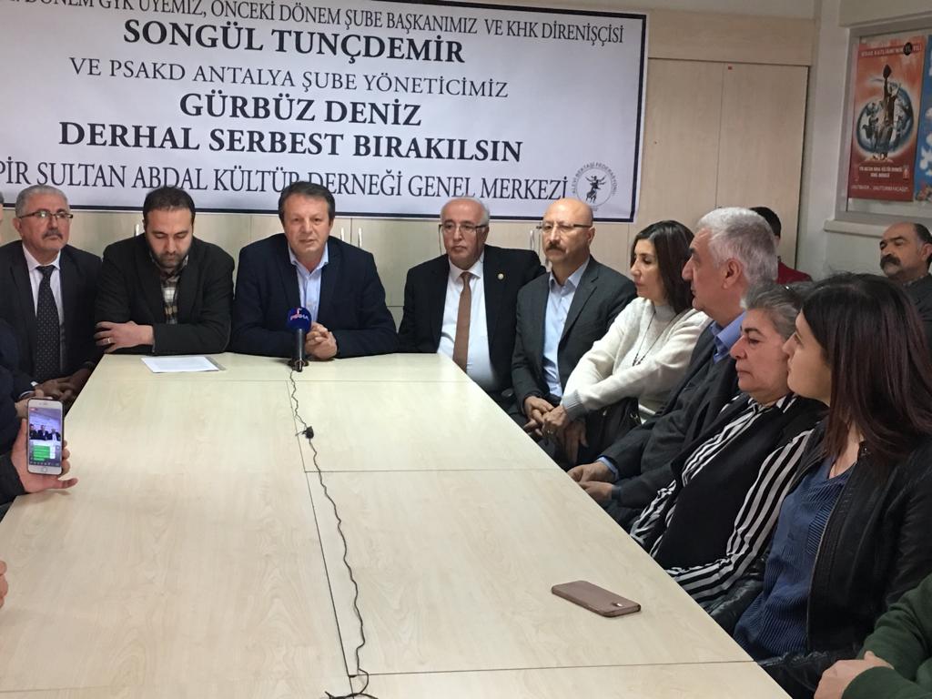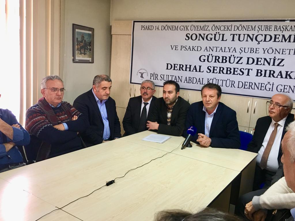 Pir Sultan Abdal Kültür Derneği (PSAKD) Genel Merkezi, gözaltına alınan derneğin eski Kartal Şube Başkanı Songül Tunçdemir ve Antalya Şube Yöneticisi Gürbüz Deniz için basın açıklaması yaptı.
