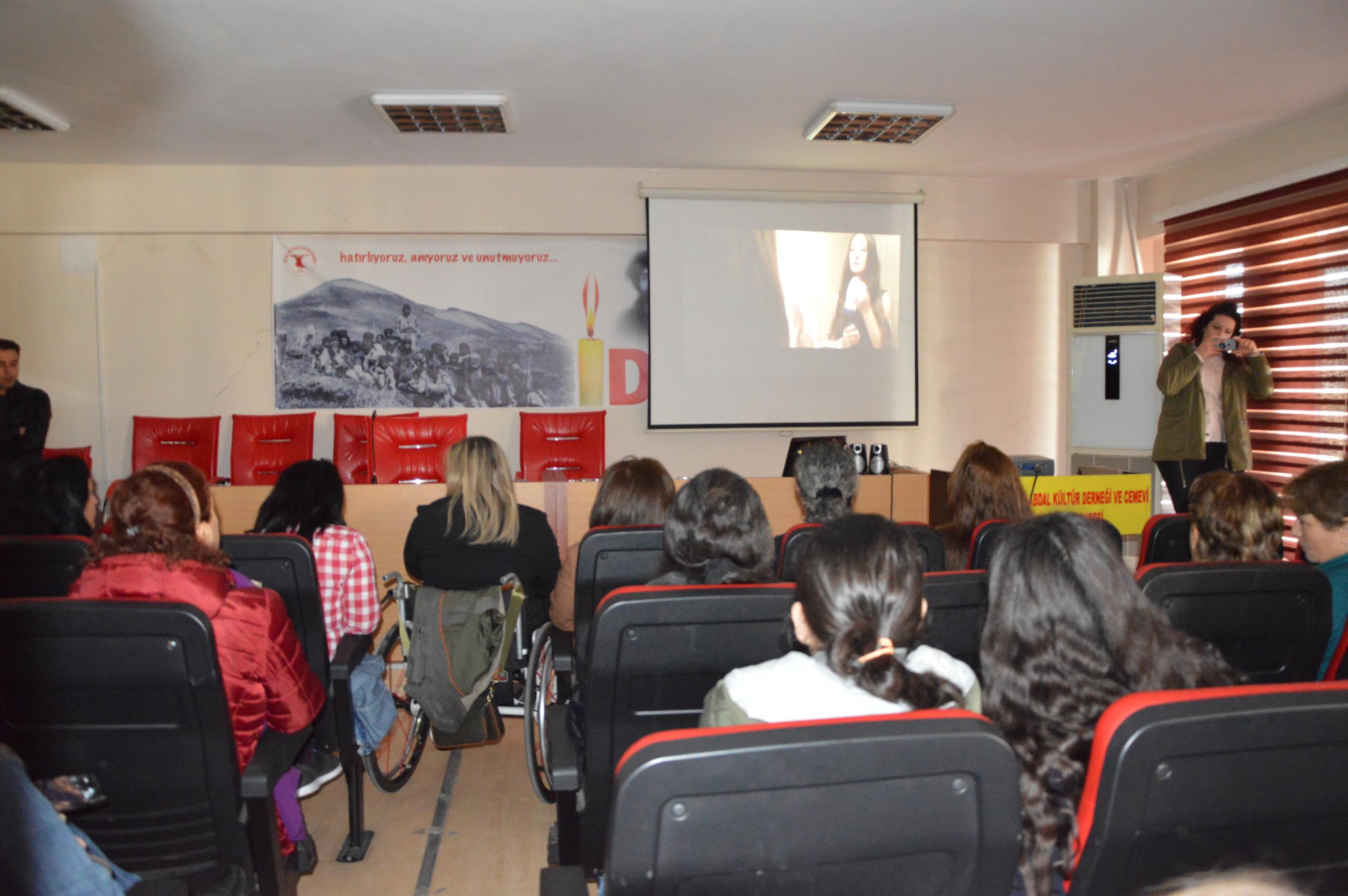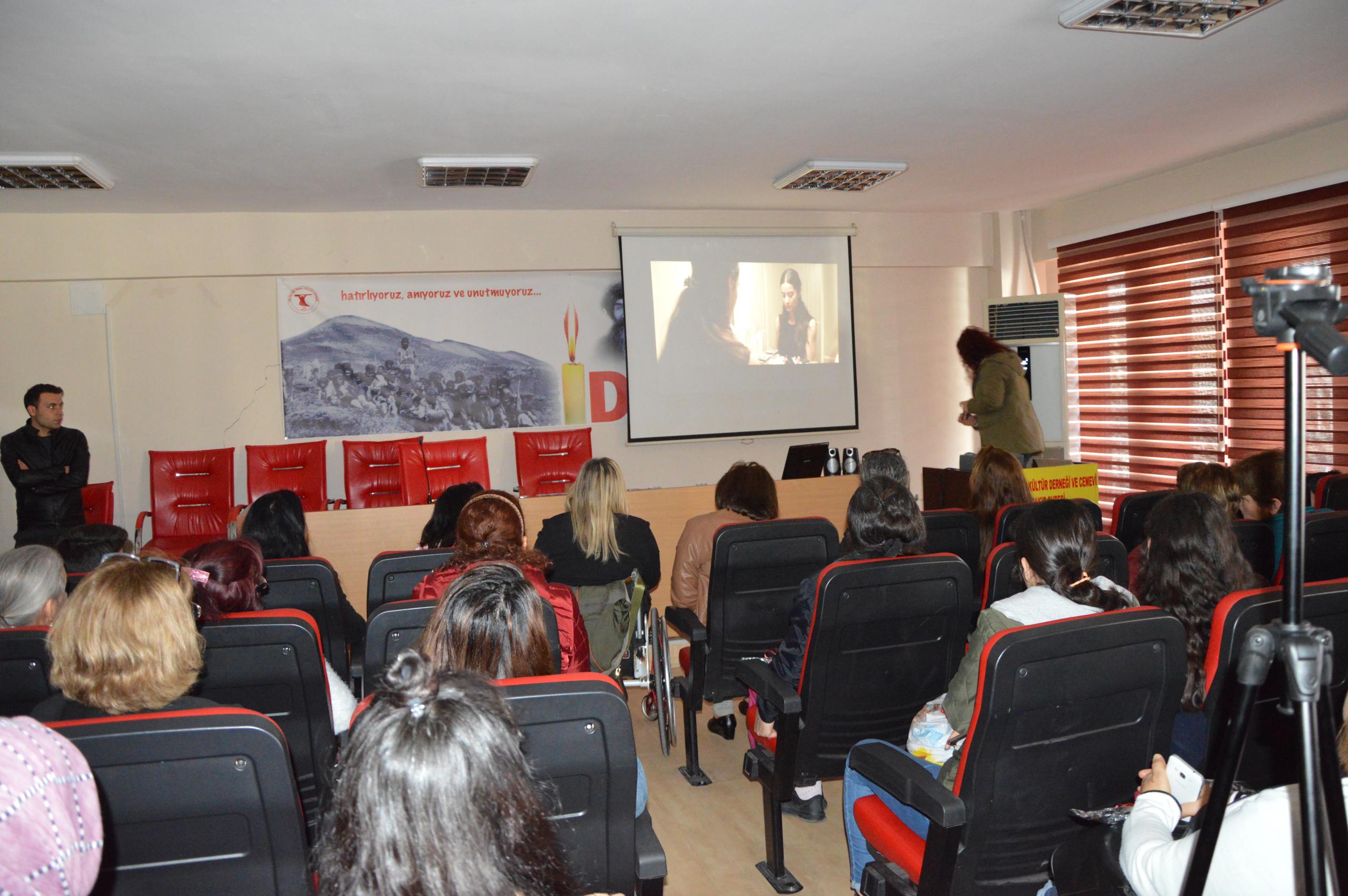 Açıklamanın ardından 8 Mart’a ilişkin sinevizyon gösterimi yapıldı, şiirler okundu.