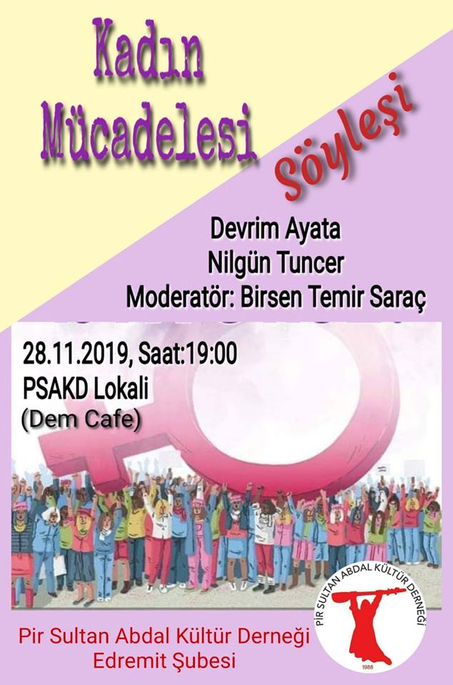 PİRHA- Pir Sultan Abdal Kültür Derneği Kültür Derneği Edremit Şubesi Kadın Kolları, ‘Kadın Mücadelesi’ başlıklı panel düzenleyecek.