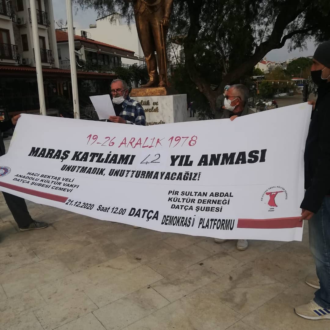 Pir Sultan Abdal Kültür Derneği (PSAKD) Edremit ve Hacı Bektaş Veli Anadolu Kültür Vakfı (HBVAKV) Datça şubeleri Maraş Katliamı’nda yaşamını yitirenleri andı. PSAKD Edremit Şube’si önünde ve Datça Cumhuriyet Meydanı’nda yapılan anmada, ‘Maraş’ı unutma unutturma’ , ‘Katiller halka hesap verecek’ sloganları atıldı.