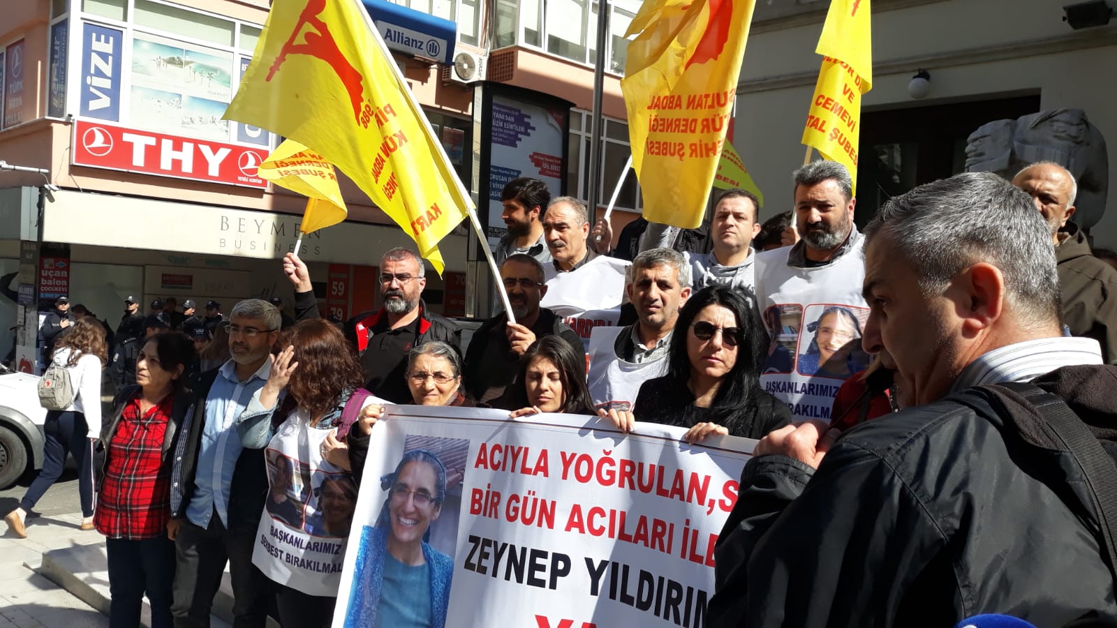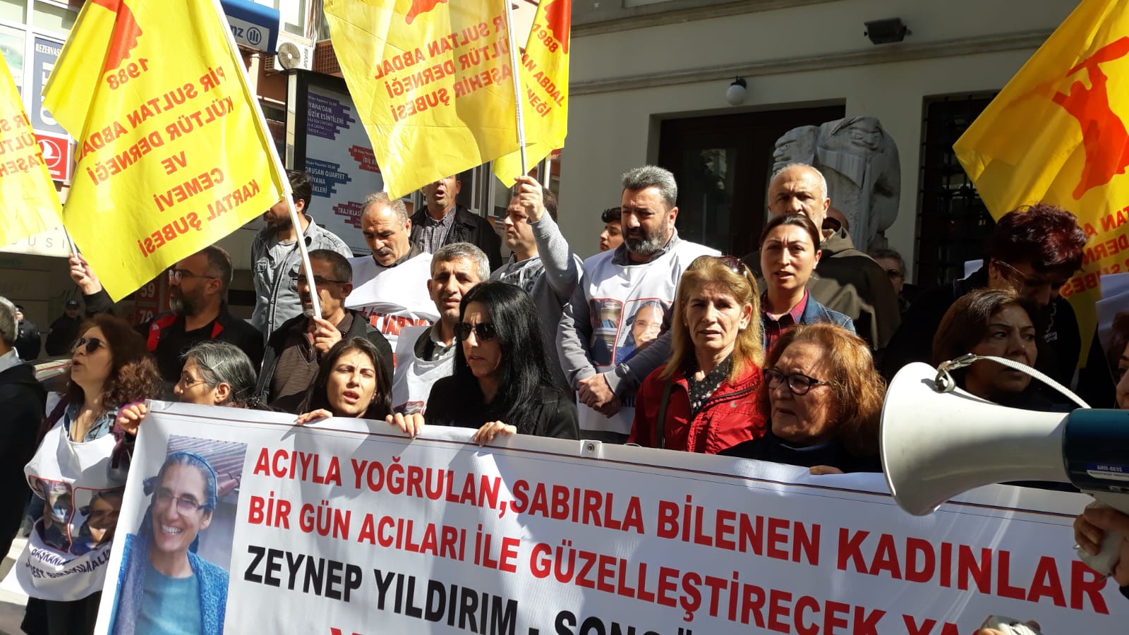 Basın açıklamasında “Acıyla yoğrulan sabırla bilenen kadınlar bir gün acıları ile güzelleştirecek yaşamı, Songül Tunçdemir ve Zeynep Yıldırım yalnız değildir” yazılı pankart açıldı.