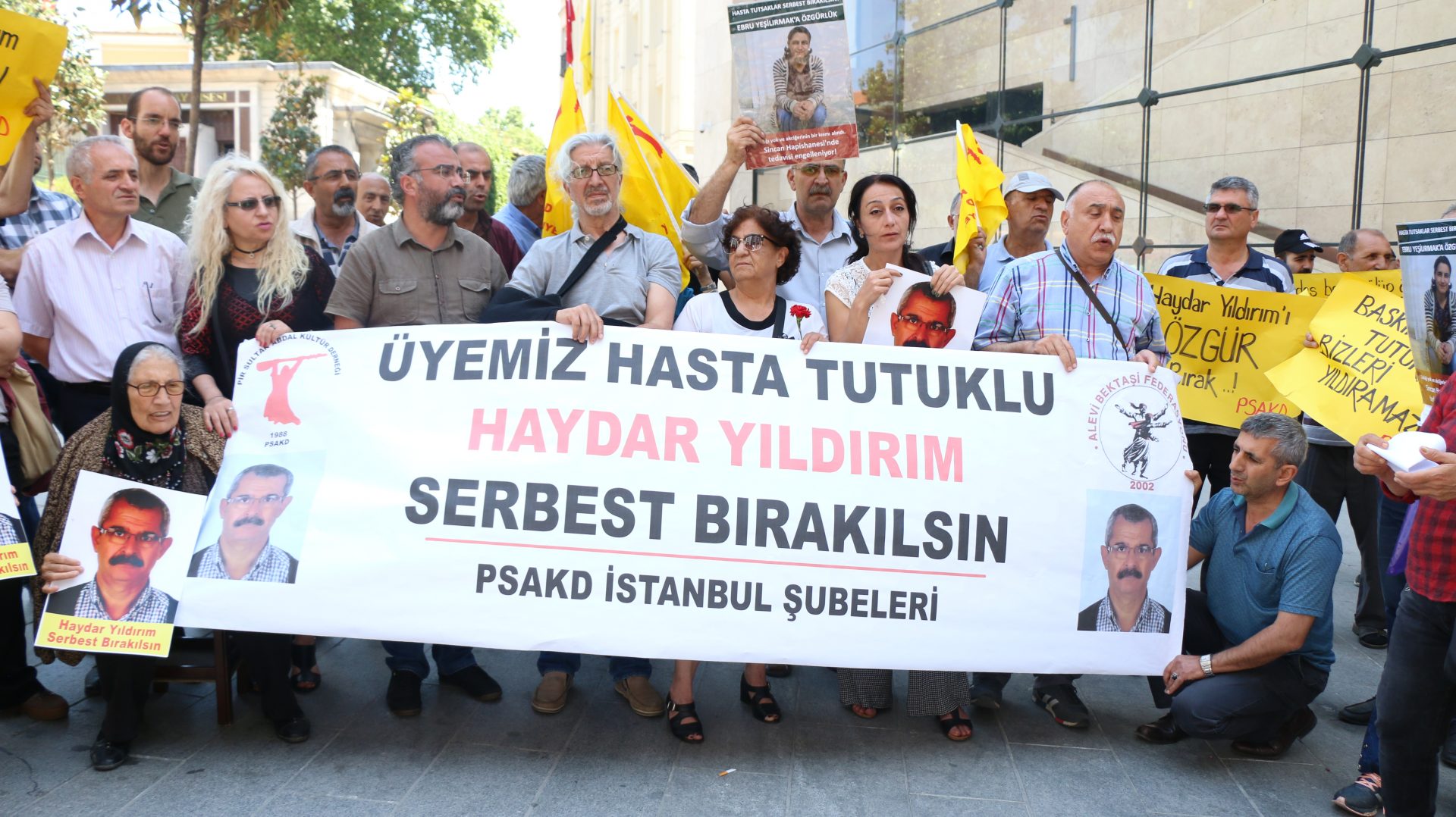 Pir Sultan Abdal Kültür Derneği(PSAKD) İstanbul Şubeleri Galatasaray Lisesi önünde bir araya gelerek tutuklu bulunan yöneticileri, üyeleri ve hasta tutuklu Haydar Yıldırım’ın serbest bırakılmasını istedi.