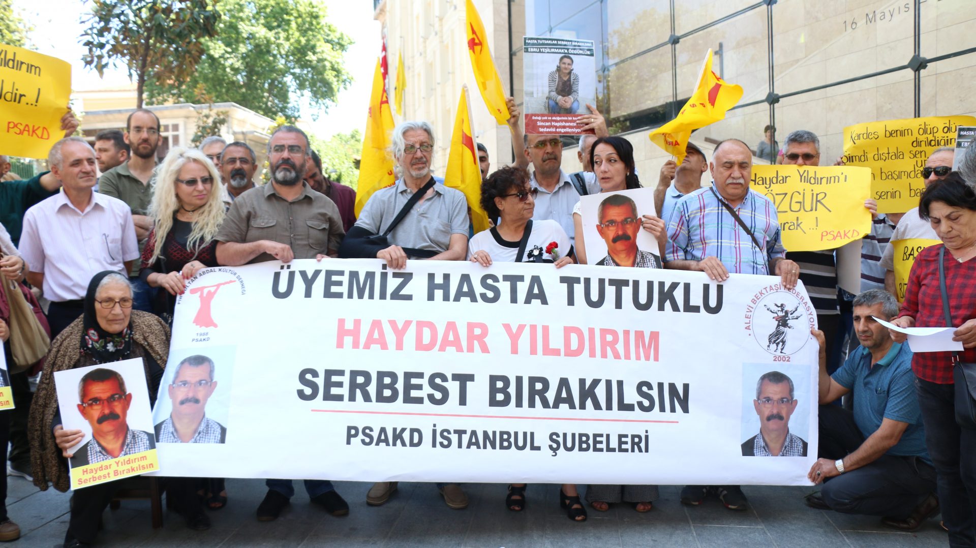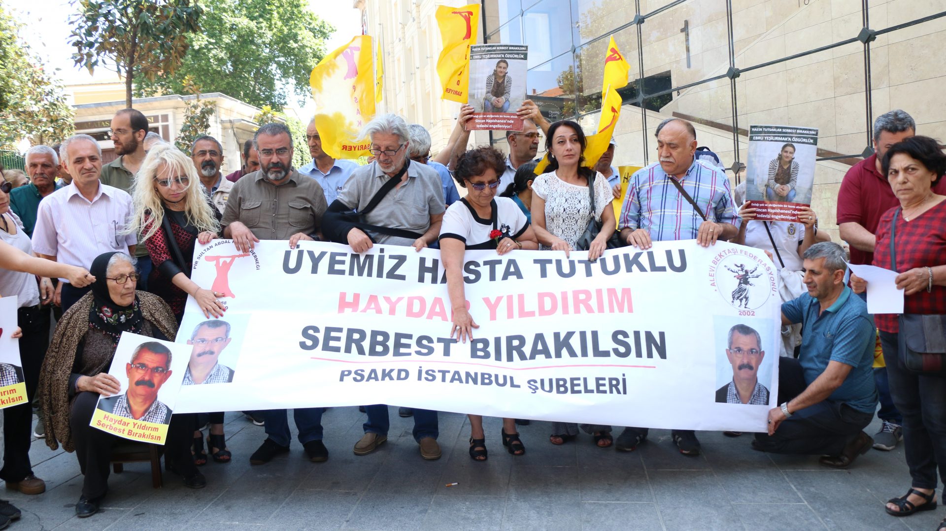 Pir Sultan Abdal Kültür Derneği(PSAKD) İstanbul Şubeleri Galatasaray Lisesi önünde bir araya gelerek tutuklu bulunan yöneticileri, üyeleri ve hasta tutuklu Haydar Yıldırım’ın serbest bırakılmasını istedi.