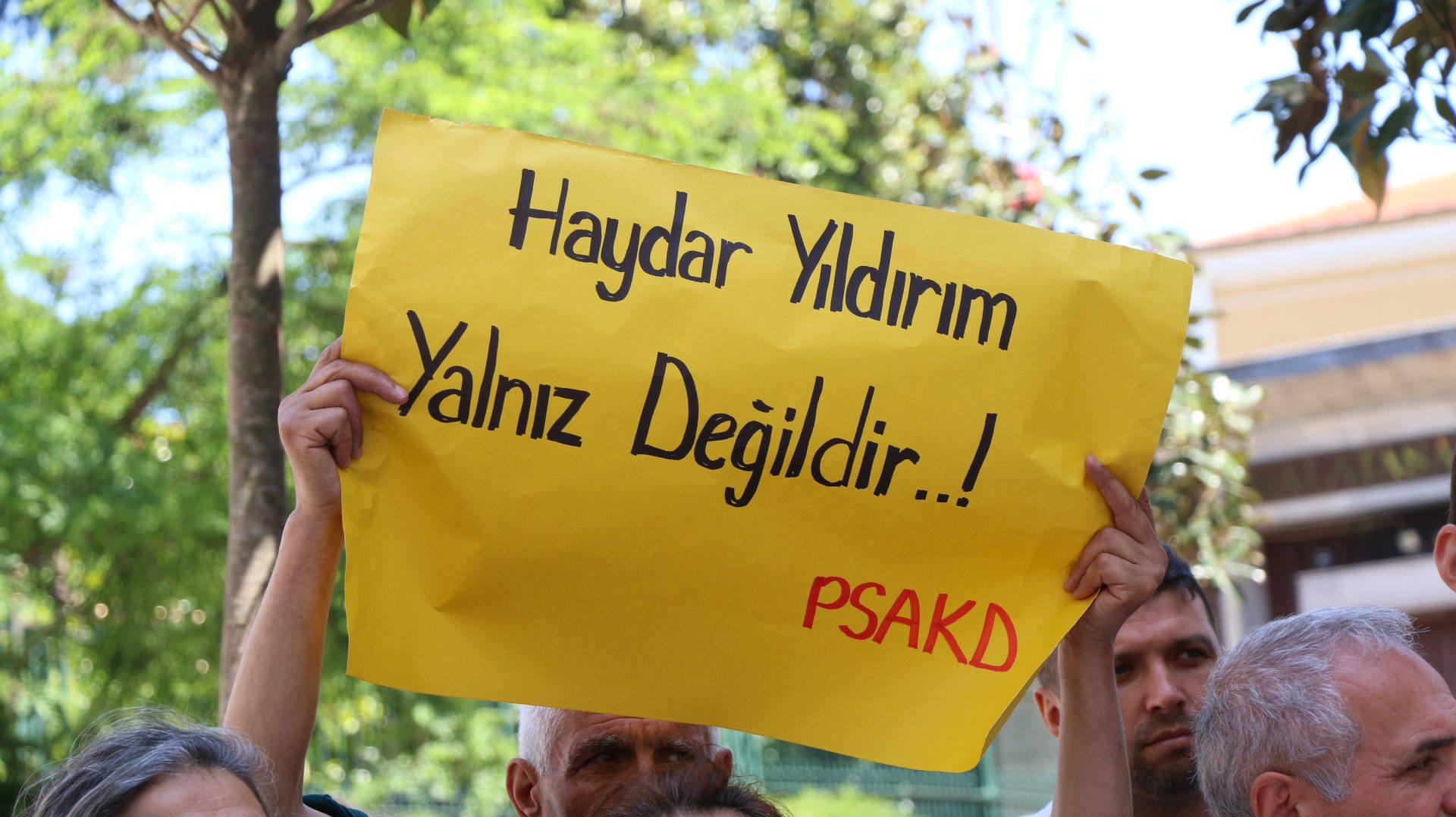 Eylemde sık sık ‘Gözaltılar, tutuklamalar baskılar bizi yıldıramaz,’ ‘Baskılar bizi yıldıramaz’ sloganları atıldı. Basın açıklamasını PSAKD Genel Başkan Yardımcısı Nejla Gül okudu. Haydar Yıldırım’ın 8 aydır tutuklu olduğunu ve yüzde 80 engelli raporunun olduğunu hatırlatan Gül, Yıldırım’ın normal koşullarda gözaltına alınmaması gerektiğini ancak AKP iktidarı tarafından evi basılarak gözaltına alındığını söyledi.