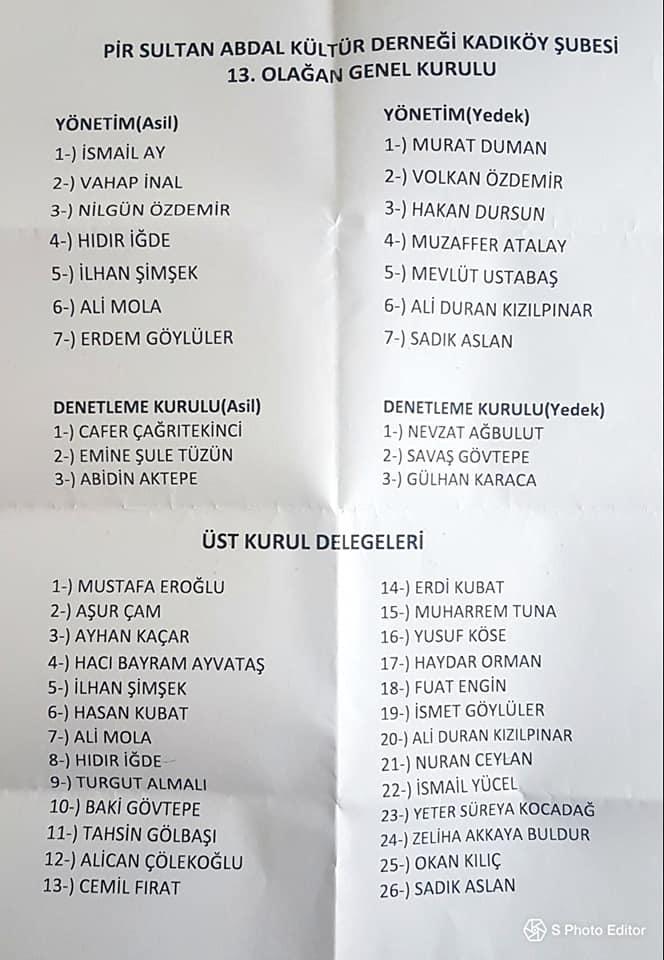 PİRHA- 13. Genel Kurulu’nu gerçekleştiren Pir Sultan Abdal Kültür Derneği Kadıköy Şubesi Başkanlığı’na İsmail Ay yeniden seçildi.