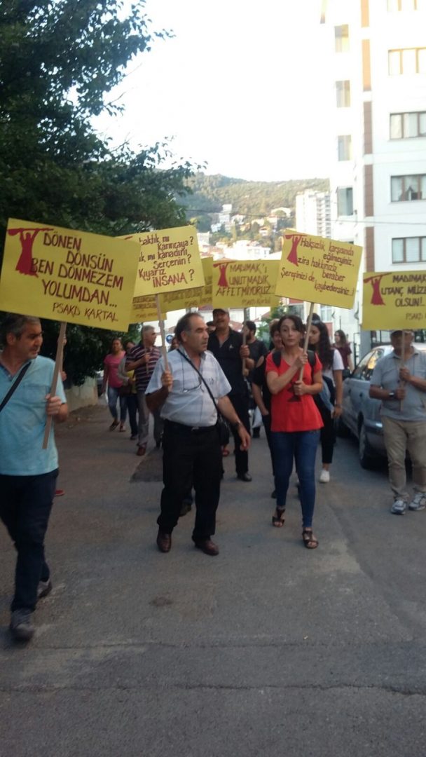 PSAKD Kartal Şubesi öncülüğünde gerçekleştirilen ve ‘Madımak Utanç Müzesi Olsun, Madımak’ı Unutmadık, Affetmiyoruz’ dövizlerinin taşındığı anmaya çok sayıda yurttaş katıldı. Katliamda yaşamını yitirenler için yapılan yürüyüşten sonra kitle adına açıklamayı PSAKD Kartal Şubesi ve Cemevi Şube Başkanı Songül Tunçdemir okudu.