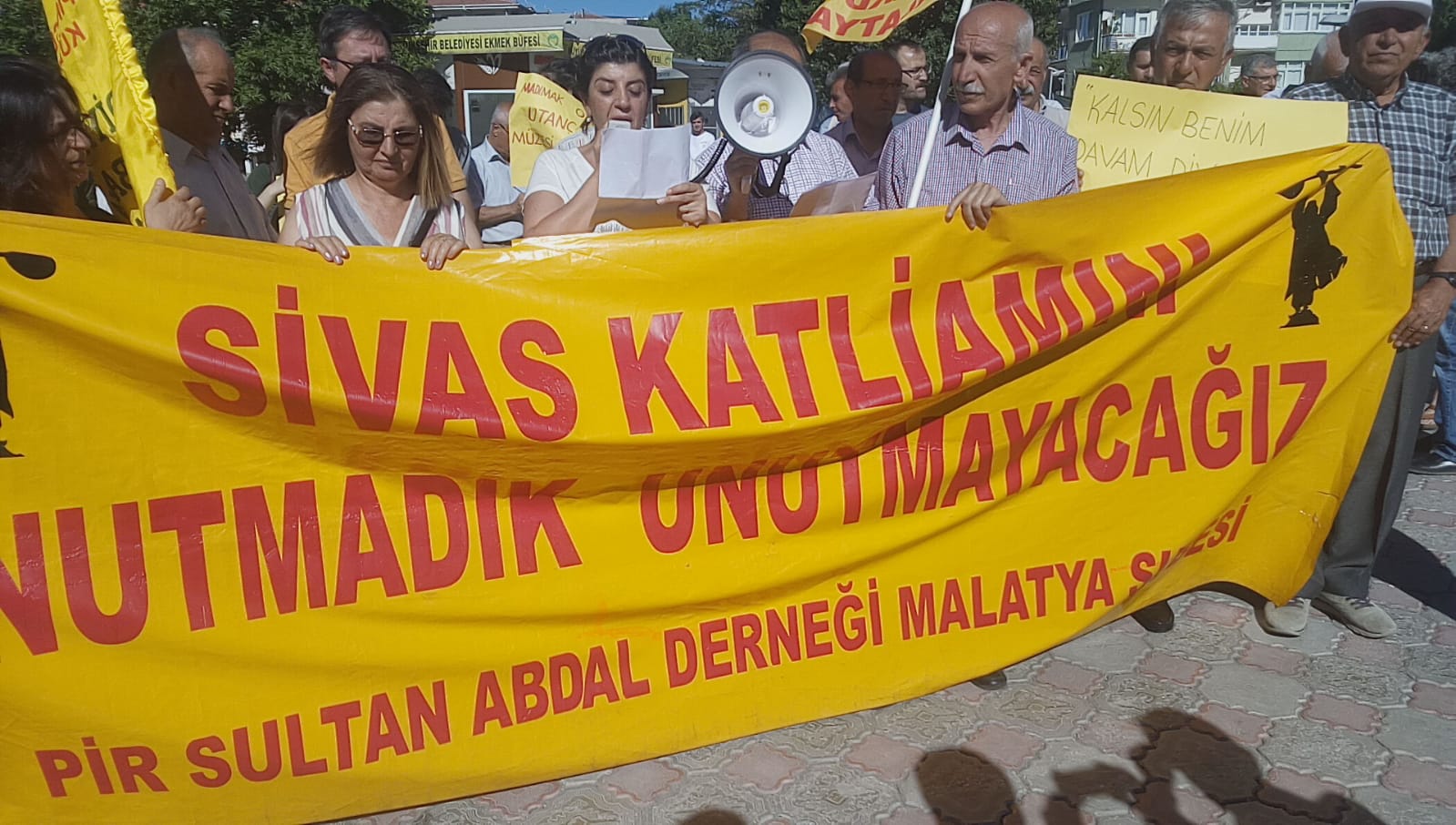 Sivas olaylarında yaşamlarını yitiren 33 kişi için Hüseyin Kuğu dede tarafından gülbeng verildi. Hemen arkasından PSAKD Malatya Şube başkanı Latife Ulutaş tarafından açıklama gerçekleştirildi. Ulutaş açıklamasında şunları söyledi; “Baskı, Asimilasyon Ve Katliam Politikalarına Karşı Eşitlik, Özgürlük Ve Adalet İçin 2 Temmuz’da Alanlarda Buluşalım! Tam 26 yıl önce içlerinde gençlerimizin, kadınlarımızın, çocuklarımızın, yazarlarımızın, sanatçılarımızın, semah dönen canlarımızın da olduğu 33 canımız, 33 aydın insanımız Sivas’ın ortasında tekbirler eşliğinde bütün devlet güçlerinin gözü önünde yakılarak katledildi.