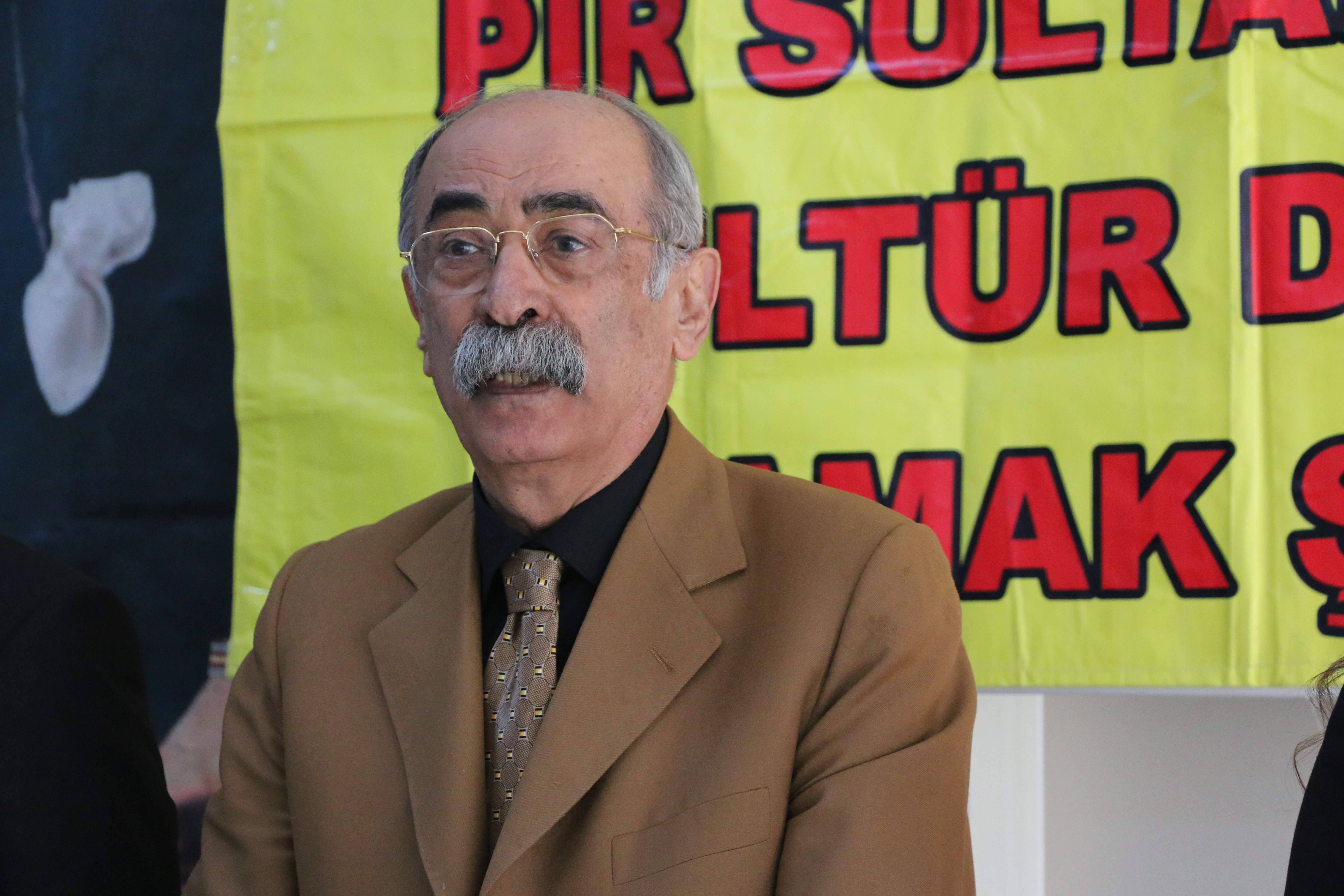 “Pir Sultan’ın dostları merhabalar. 77 millete aynı nazardan bakan, eline, beline, diline sahip olan kamil insan olma mücadelesi veren, rıza şehrinin yaşam bulması için ilkelerinden taviz vermeyenler merhaba. Enel-hak dediği için derisi yüzülen Nesimi’nin direnciyle, “ben sizlerin hileleri ile baş edemedim bu bana dert oldu, sizlerin önünde diz çökmedim buda size ders olsun” diyen Seyit Rıza’nın direnciyle, 1204 yılında Kadın Alevi örgütünü kuran Fatma bacının örgüte olan inancıyla, Pir Hacı Bektaş Veli’nin “incinsen de incitme”, “biz korkuyu Kerbela’da bıraktık” diyen Hüseyinlerin direnciyle, yarın yanağından gayrı her şeye ortaktır diyen Şeyh Bedrettin’in kararlılığı, “dönen dönsün ben dönmezem yolumdan” diyen Pir Sultan Abdal direnci ve coşkusuyla sizleri selamlıyorum.”