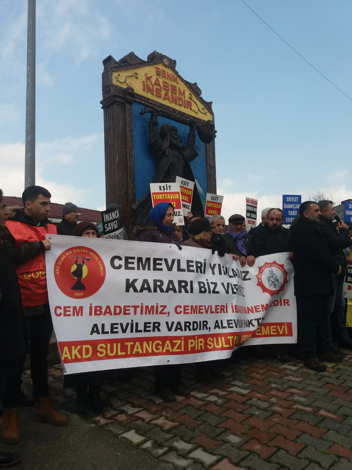 Cemevi önünde kısa bir açıklama yapan Sultangazi Pir Sultan Abdal Cemevi Başkanı Zeynal Odabaş, “Bu direnişimizi, haklı davamızı sürdürerek bu mahkemeleri mahkum edeceğiz. Bize mahkeme önünde gaz sıkan, bizi orada saatlerce bekleten zihniyeti kınıyoruz. Cemevleri ibadetimiz ve ibadethanemizdir” dedi.
