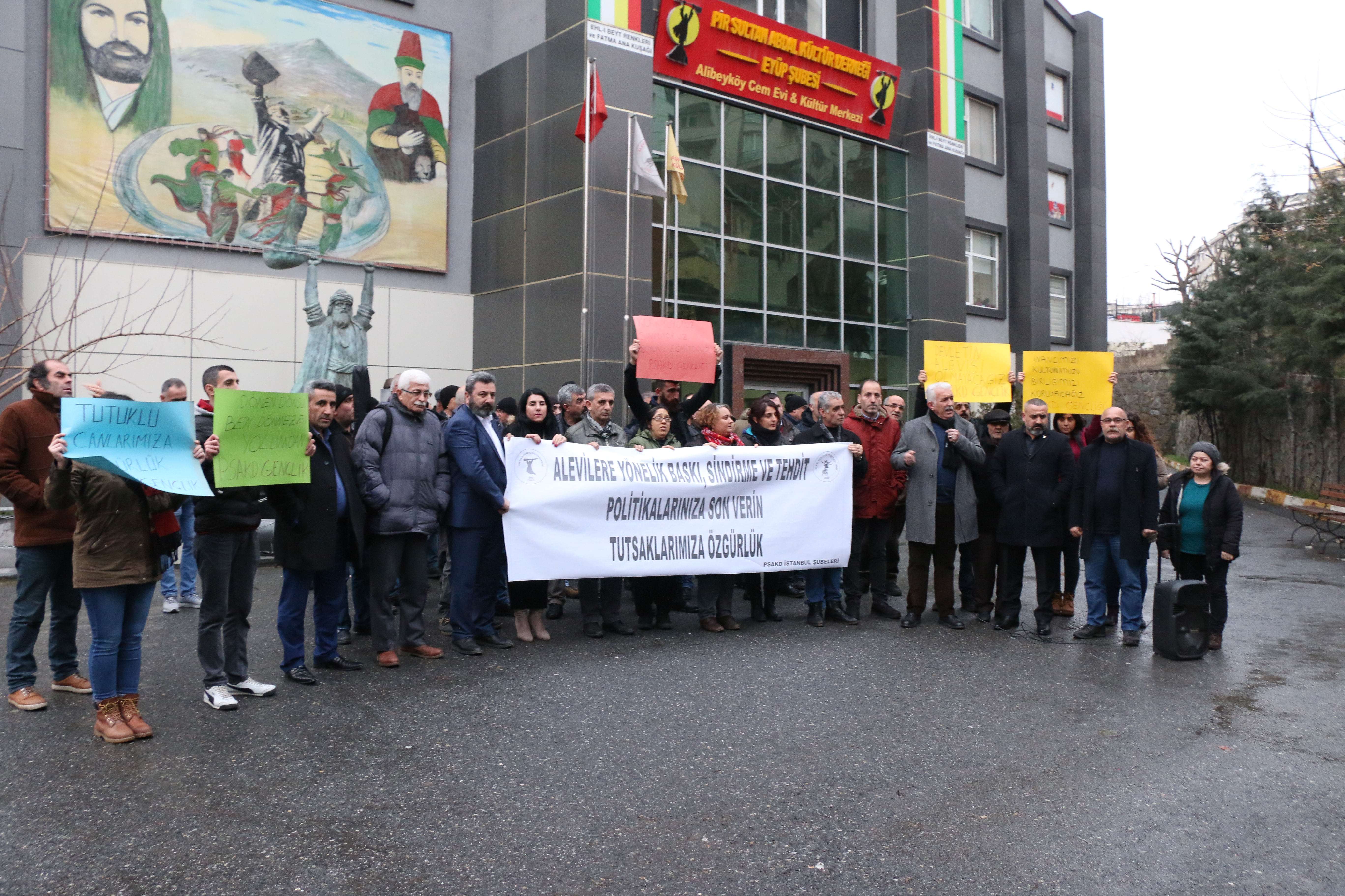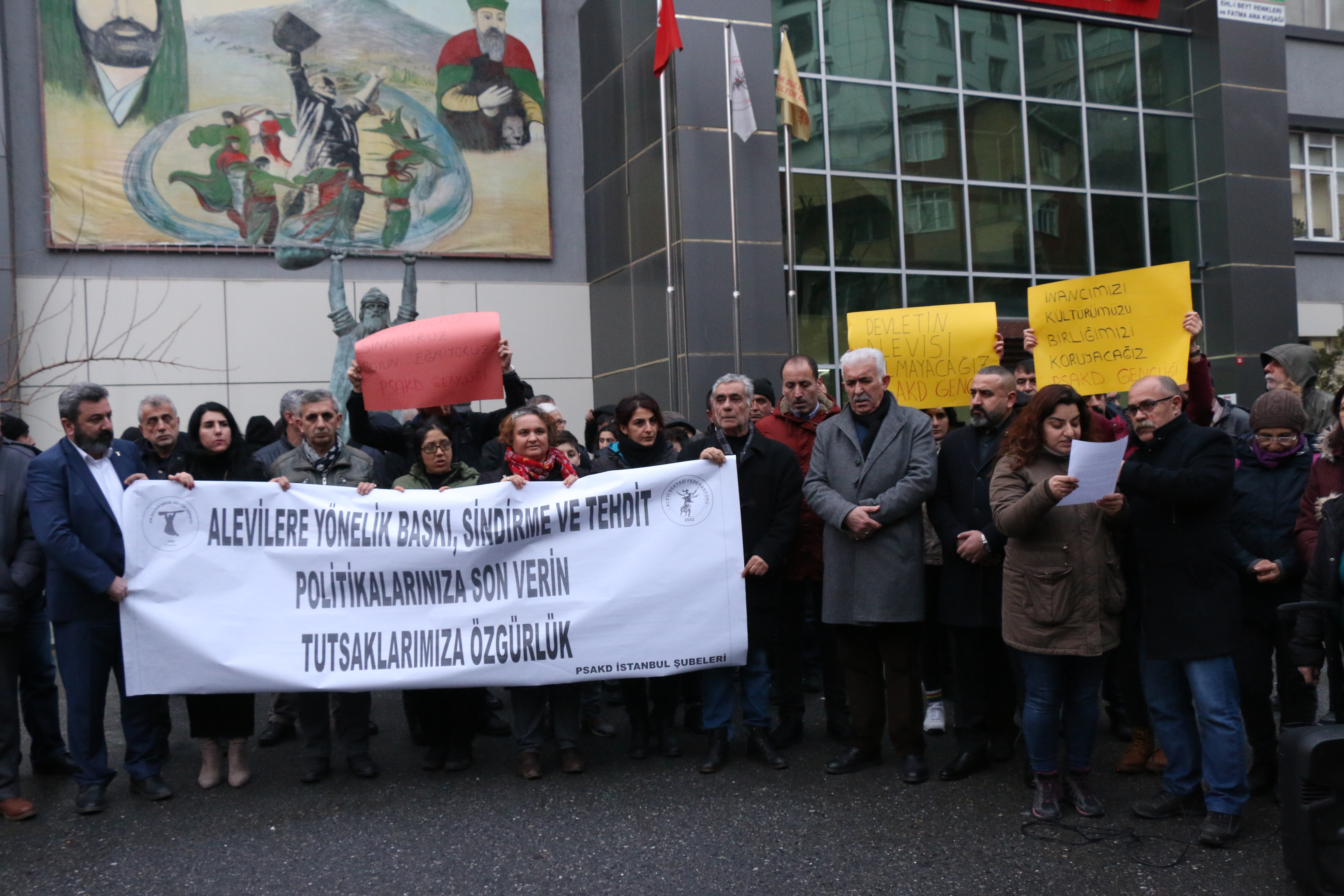 Tutuklamalara yönelik kitlesel tepkilerden biri de İstanbul PSAKD Alibeyköy’de yapıldı. Alevi Bektaşi Federasyonu Genel Başkanı Hüseyin Güzelgün, “Aleviler üzerinde küresel bir baskı var” diyerek sözlerini şu cümlelerle sürdürdü: