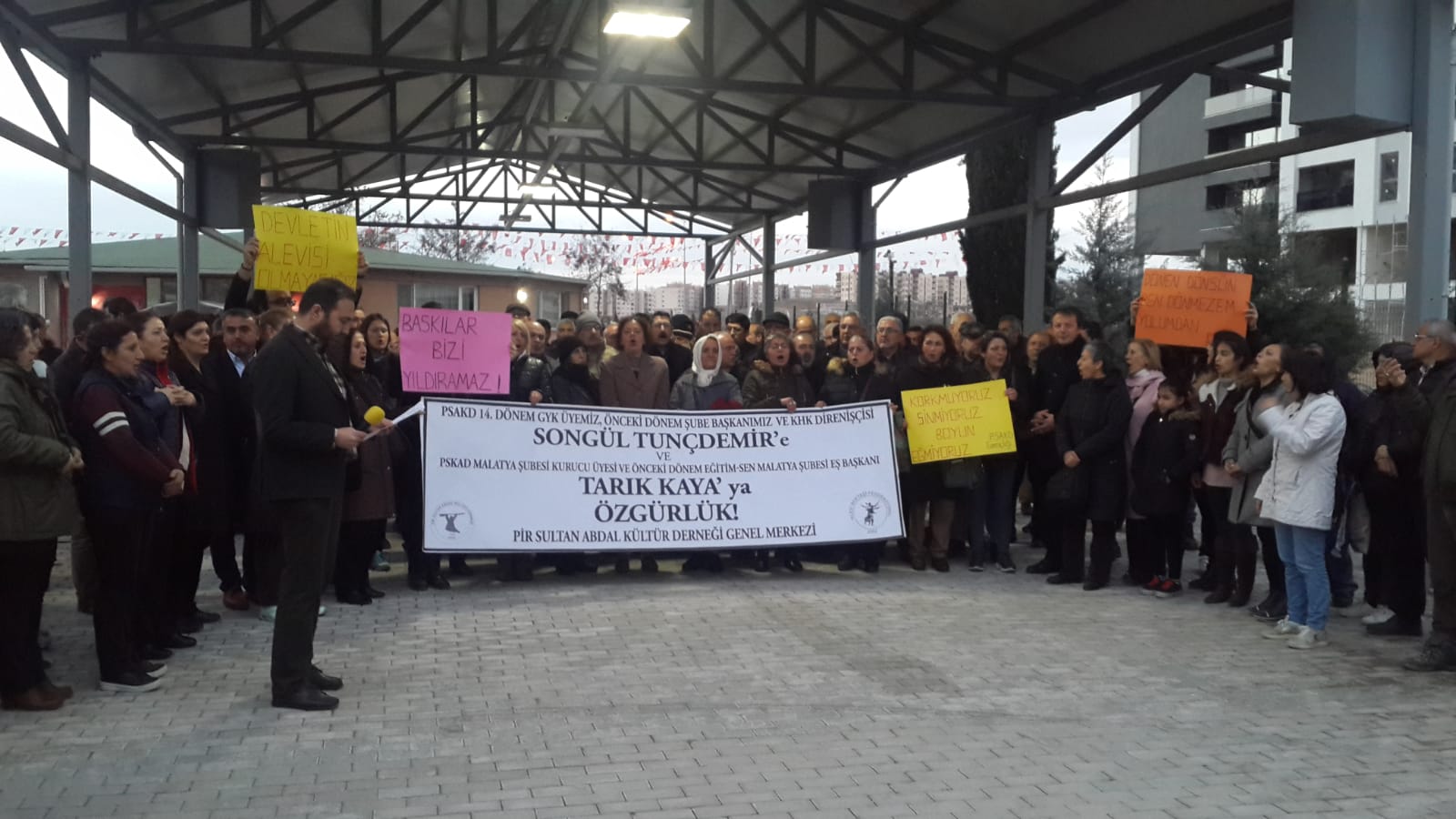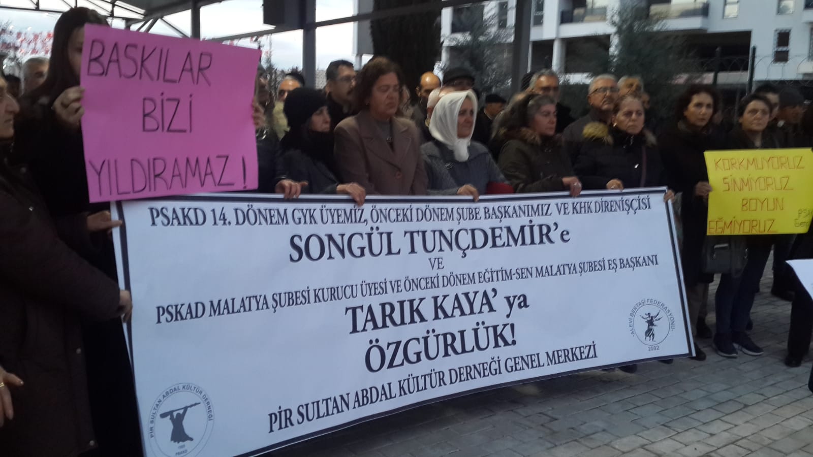PSAKD ile merkeze bağlı çok sayıda şube örgütü, Malatya ve Kartal Şube başkanlıkları görevinde bulunan Songül Tunçdemir ile Malatya Şube kurucularından Tarık Kaya’nın tutuklanmasını protesto etti.