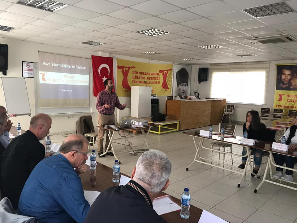 Pir Sultan Abdal Kültür Derneği Genel merkezi tarafından şubelerde, ‘Çalışmaların Koordinasyonu, Örgütlenme Kapasitesini Artırma Ve Hedef Yönetimi Stratejilerini Geliştirme Eğitimi’ başlıklı 2 günlük eğitim çalışması devam ediyor. Çalışma, Yazar Turan Eser’in eğitmenliğinde PSAKD Yenimahalle Şube Batıkent Cemevi’nde başlatıldı.