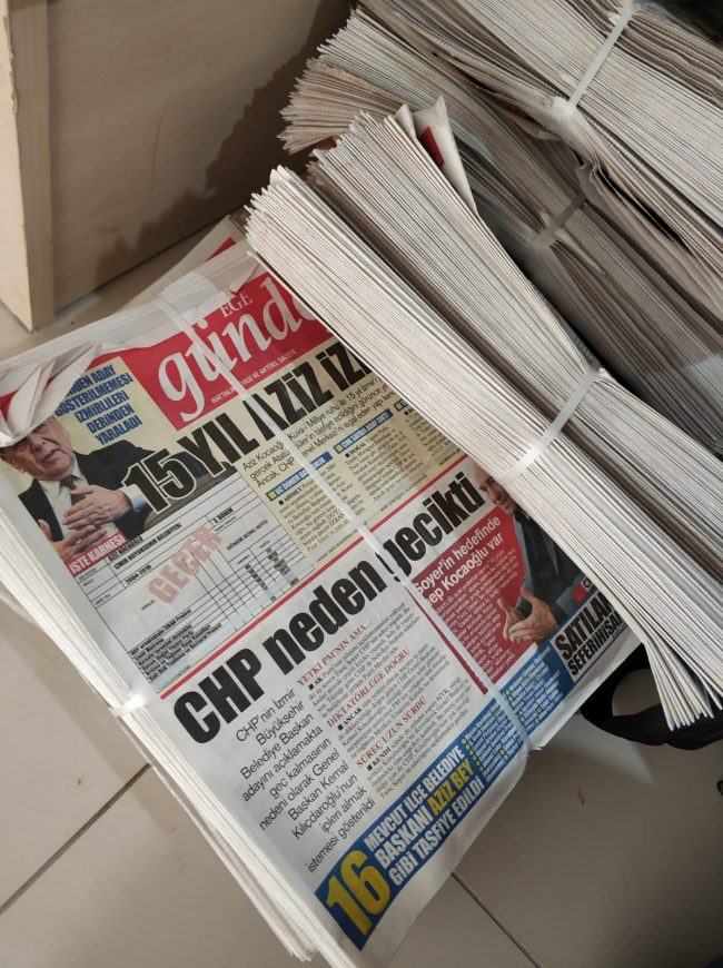 İzmir’de PTT Başmüdürlüğü’nün 25 Mart tarihli talimatıyla, CHP adayı Tunç Soyer’i karalayan 490 bin adet “Ege Yerel Gündem” adlı yerel gazete postane emekçilerine zorla dağıttırıldı.