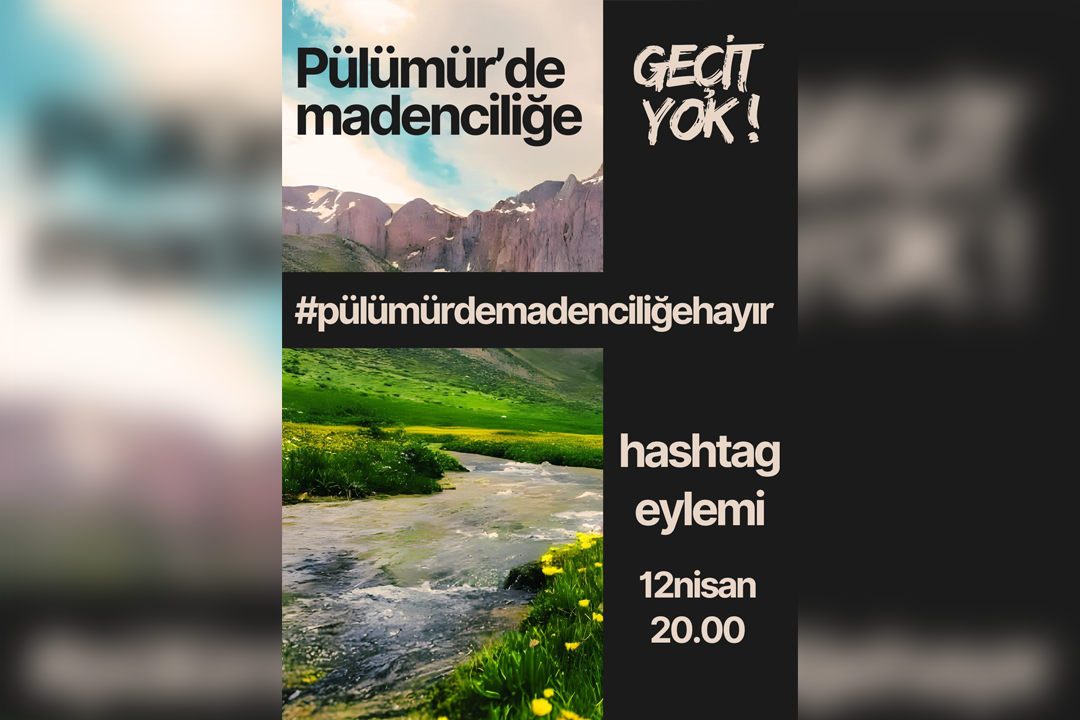12 Nisan Pazar günü saat 20.00’de Instagram ve Twitter sosyal medya platformları üzerinden, “#pülümürdemadenistemiyoruzetiketiyle” yapılacak eylemle, hem kamuoyuna seslenilecek hem de yetkililere tepki gösterilerek, maden projesinin durdurulması için çağrıda bulunulacak.