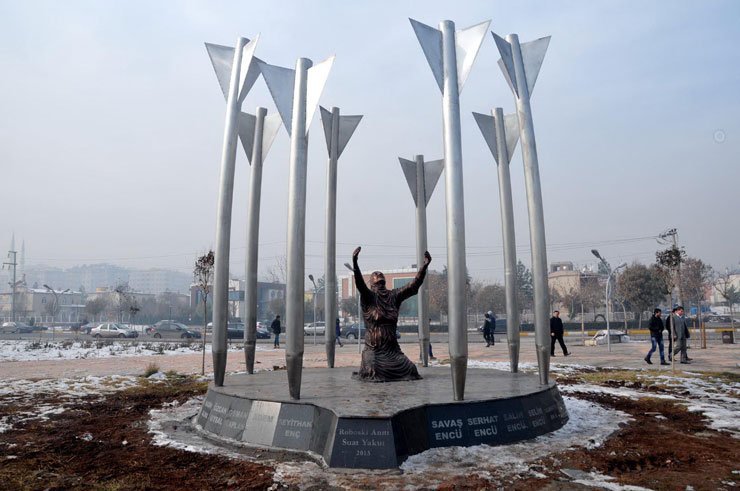 Şırnak’ın Uludere ilçesine bağlı Roboski köyünde TSK’ye ait savaş uçakları tarafından 28 Aralık 2011’de yapılan bombardıman sonucu yaşamını yitiren 34 yurttaş için 4 yıl önce Diyarbakır’ın merkez Kayapınar ilçesi Diclekent semtinde açılan Rojava Parkı’ndaki Roboski anıtı kaldırıldı. Heykeltıraş Suat Yakut tarafından yapılan anıtta, 8 füze maketi, avuçlarını açmış ağıt yakan kadın heykeli etrafında katliamda yaşamını yitiren 34 kişinin isimlerinin yazılı olduğu mermerler bulunuyordu.