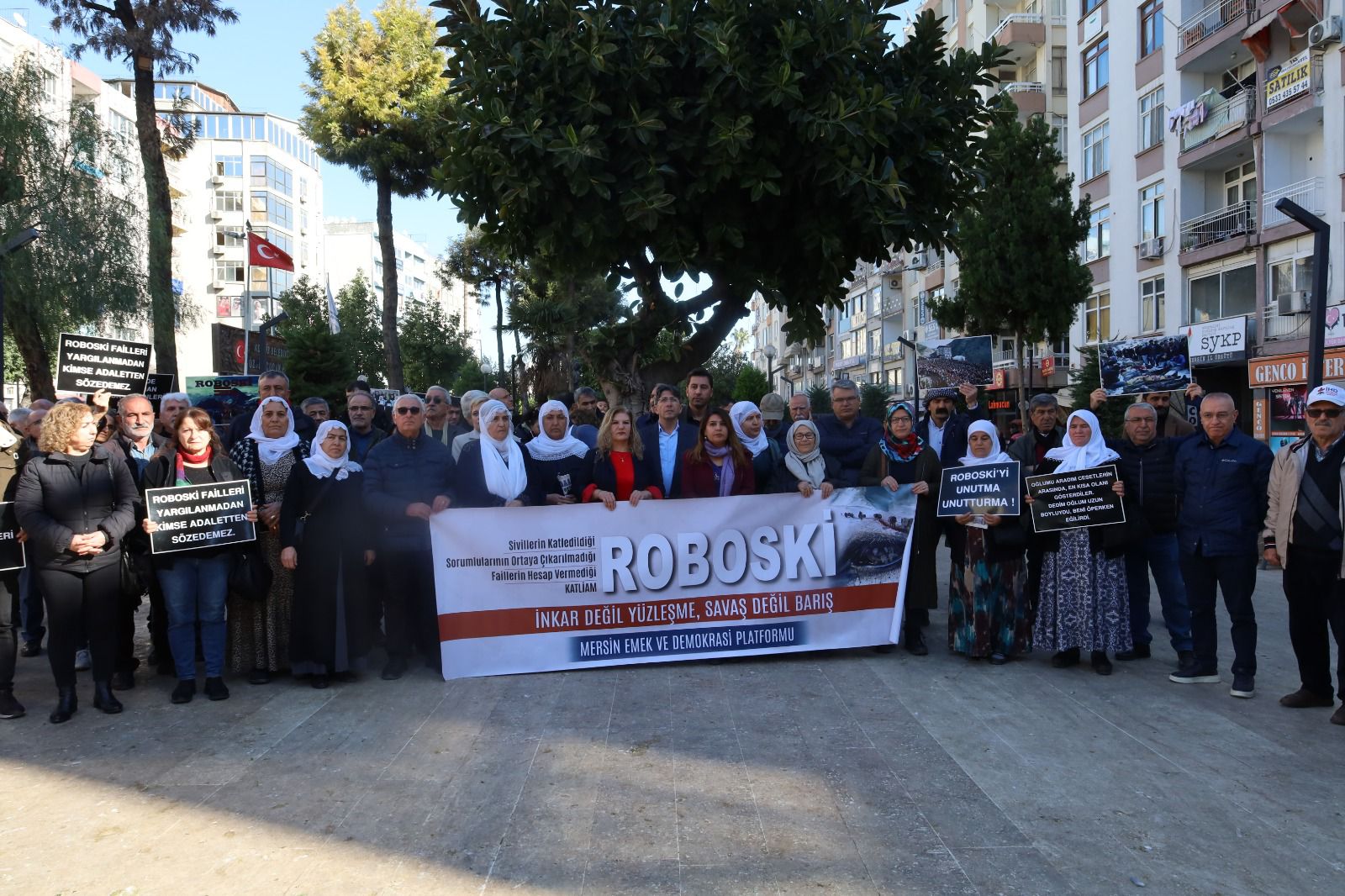 Mersin Emek ve Demokrasi Platformu, Roboski Katliamı’na ilişkin Özgür Çocuk Parkında basın açıklaması yaptı. “İnkar değil yüzleşme, savaş değil barış” pankartının açıldığı açıklamada “Roboski’yi unutma, unutturma sloganları atıldı.