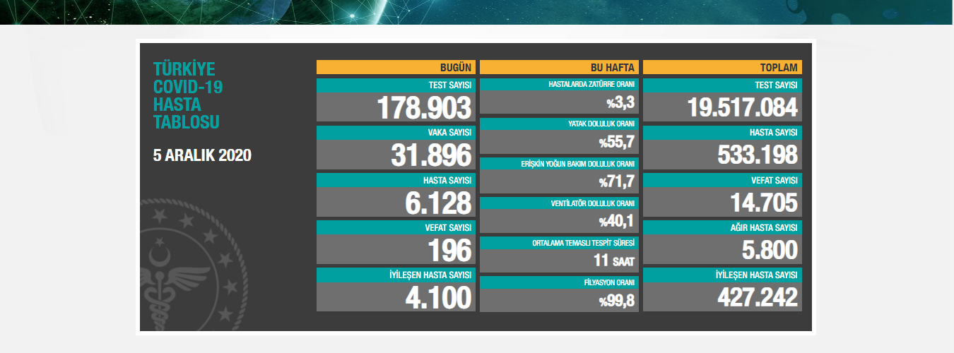 Türkiye’de koronavirüs nedeniyle 196 kişi daha hayatını kaybetti, 31 bin 896 yeni ‘vaka’ tespit edildi. Böylece toplam vefat sayısı 14 bin 705’e, toplam hasta sayısı ise 533 bin 198’e yükseldi