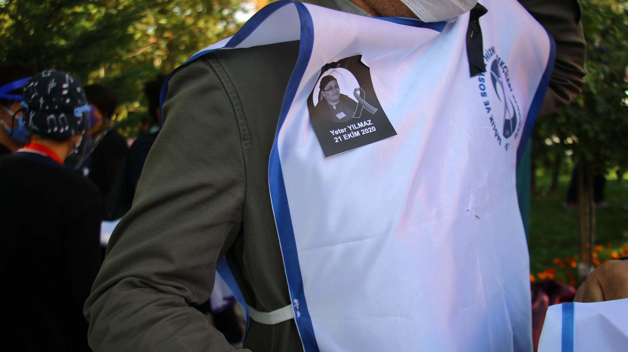 Ağır iş yükünden dolayı arkadaşlarımızı kaybetmeye devam ediyoruz. Salgının başında koruyucu ekipmanların yetersiz olduğunu söylemiştik bunun yüzünden bugün burada Yeter arkadaşımızın anmasını gerçekleştiriyoruz” dedi.