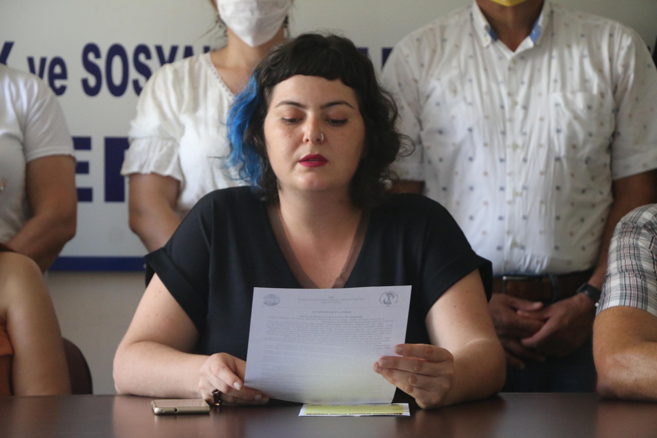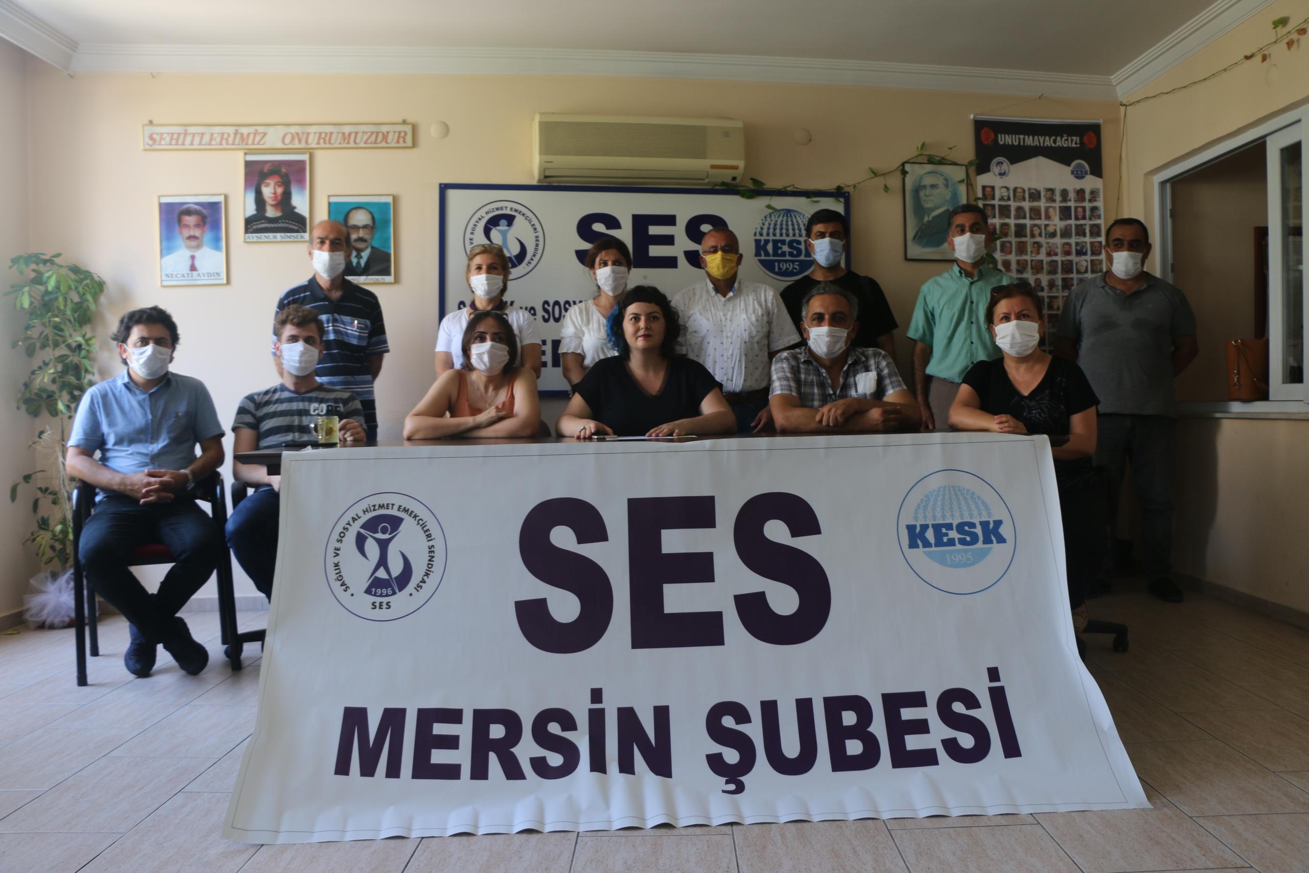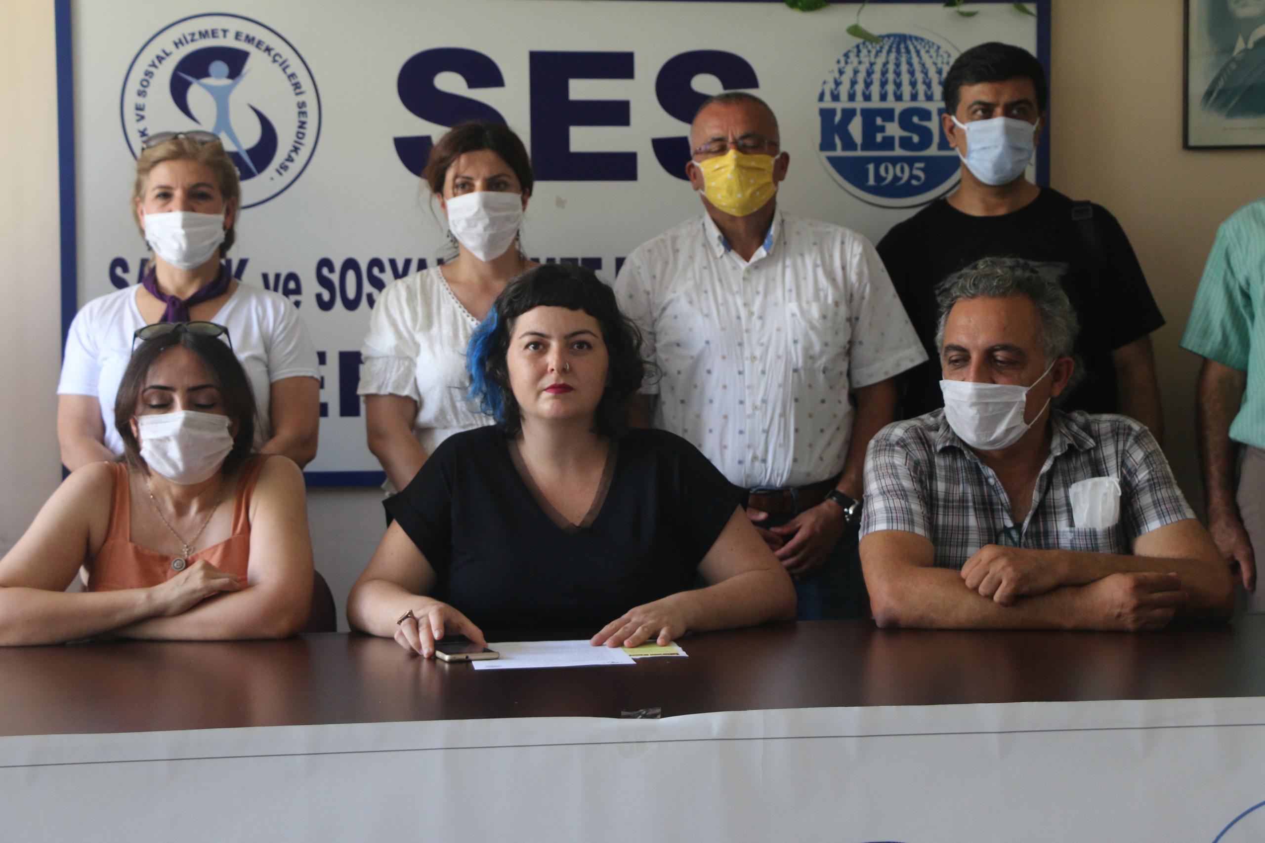 Sağlık ve Sosyal Hizmet Emekçileri Sendikası (SES) Mersin Şubesi Eş Başkanı Özge Göncü, sendika binasında sağlık alanında yaşanan güvencesizliğe dair açıklama yaptı.