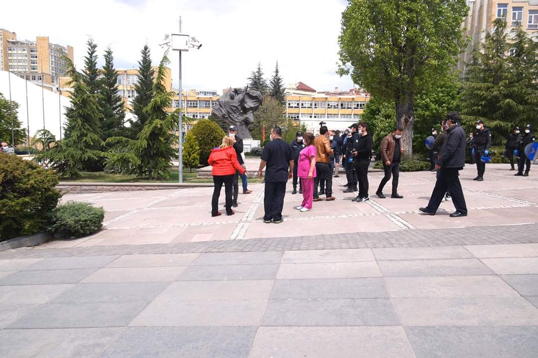 ATO Genel Sekreteri Ali Karakoç ise, “Salgın sürecinde bile baskı ile toplumu yönetmeye çalışan iktidarın politikalarını kınamak istiyorduk. Temel amacımız bugün yaşamını yitiren sağlık emekçilerini anmaktı ama izin vermediler. Fiziki mesafemizi koruyarak anma yapabilirdik” diye konuştu.