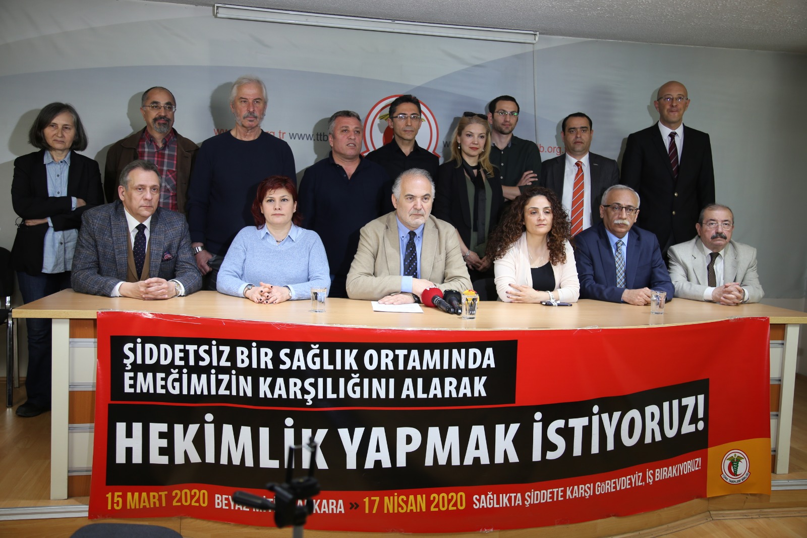Sağlık iş kolunda örgütlü bulunan  Türk Tabipleri Birliği (TTB), Türk Dişhekimleri Birliği Sağlık ve Sosyal Hizmet Emekçileri Sendikası, Devrimci Sağlık İşçileri Sendikası, Sosyal Hizmet Uzmanları Derneği, Türk Hemşireler Derneği, Tüm Radyoloji Teknisyenleri ve Teknikerleri Derneği, Türk Psikologlar Derneği, Ankara Veteriner Hekimler Odası, Veteriner Hekimler Derneği yöneticileri TTB bir araya gelerek ortak basın toplantısı gerçekleştirdi. Kurumlar adına ortak basın açıklamasını TTB Konsey Başkanı Prof. Dr. Sinan Yerlikaya okudu.