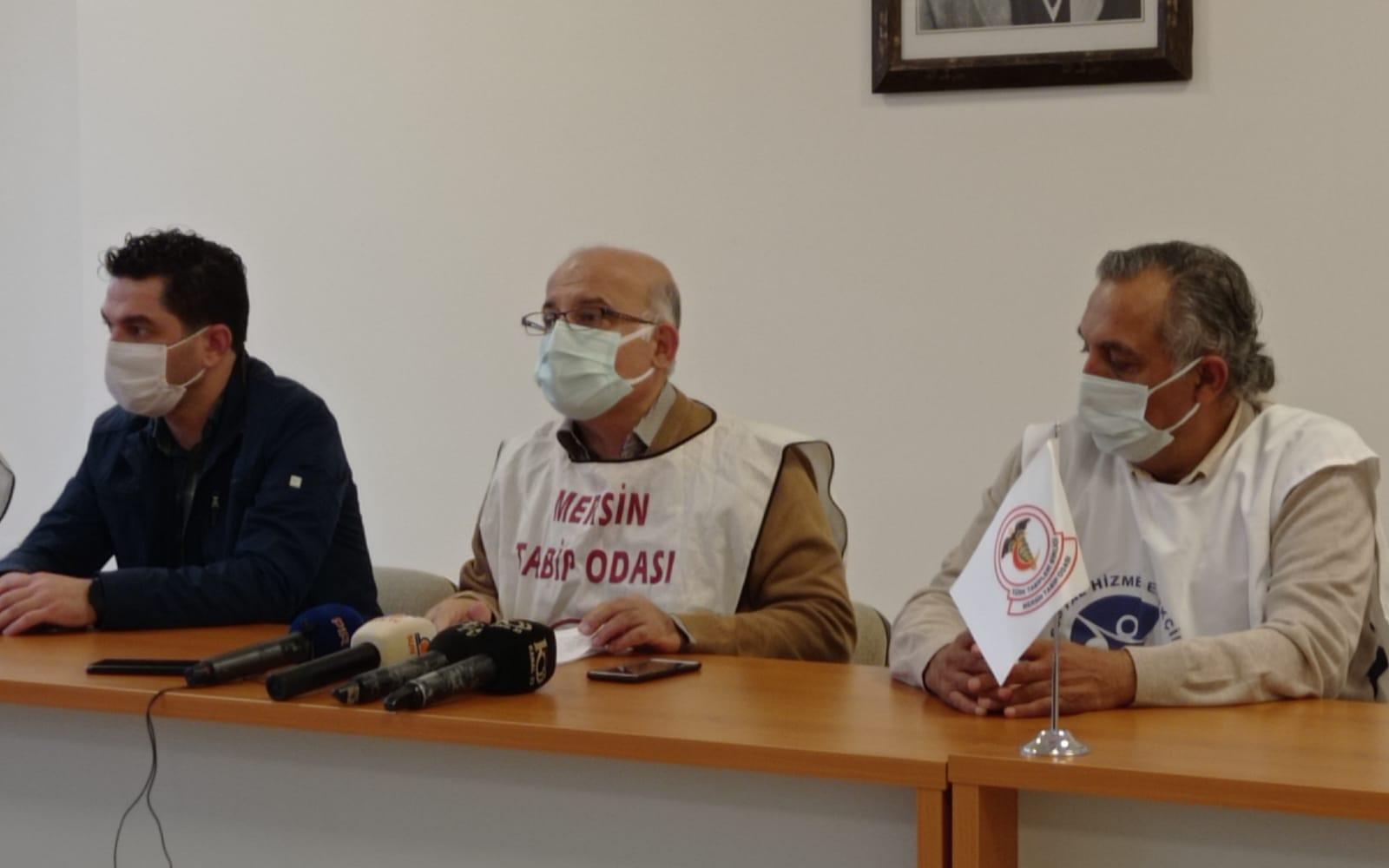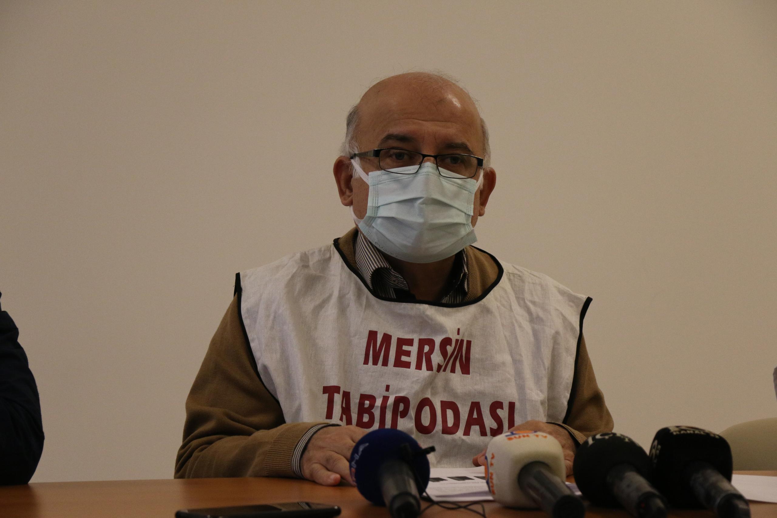 Mersin Tabip Odası’nda düzenlenen toplantıda konuşan oda başkanı Mehmet Antmen, “Günlük vaka sayılarının kentimizde hızla arttığı, ülkemizde 70-75 bin civarında olması nedeniyle vaka sayısı açısından dünya genelinde ilk üç ülke arasında olduğumuz dönemde, şehirlerarası trafiğin kapanmasını, toplumsal hareketliliğin kısıtlanmasını, AVM ve ibadethanelerin kapanmasını içermeyen önlemlerin pandemi ile mücadelede yeterli olmadığına inanıyoruz” dedi.