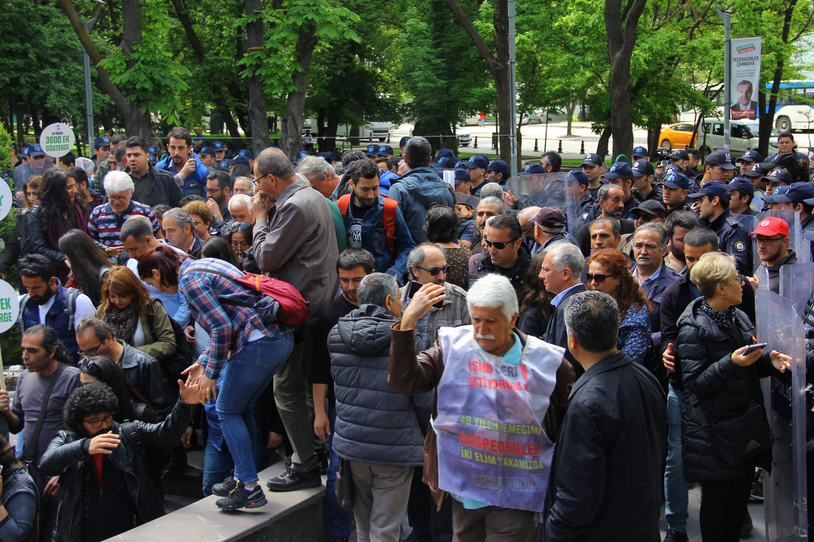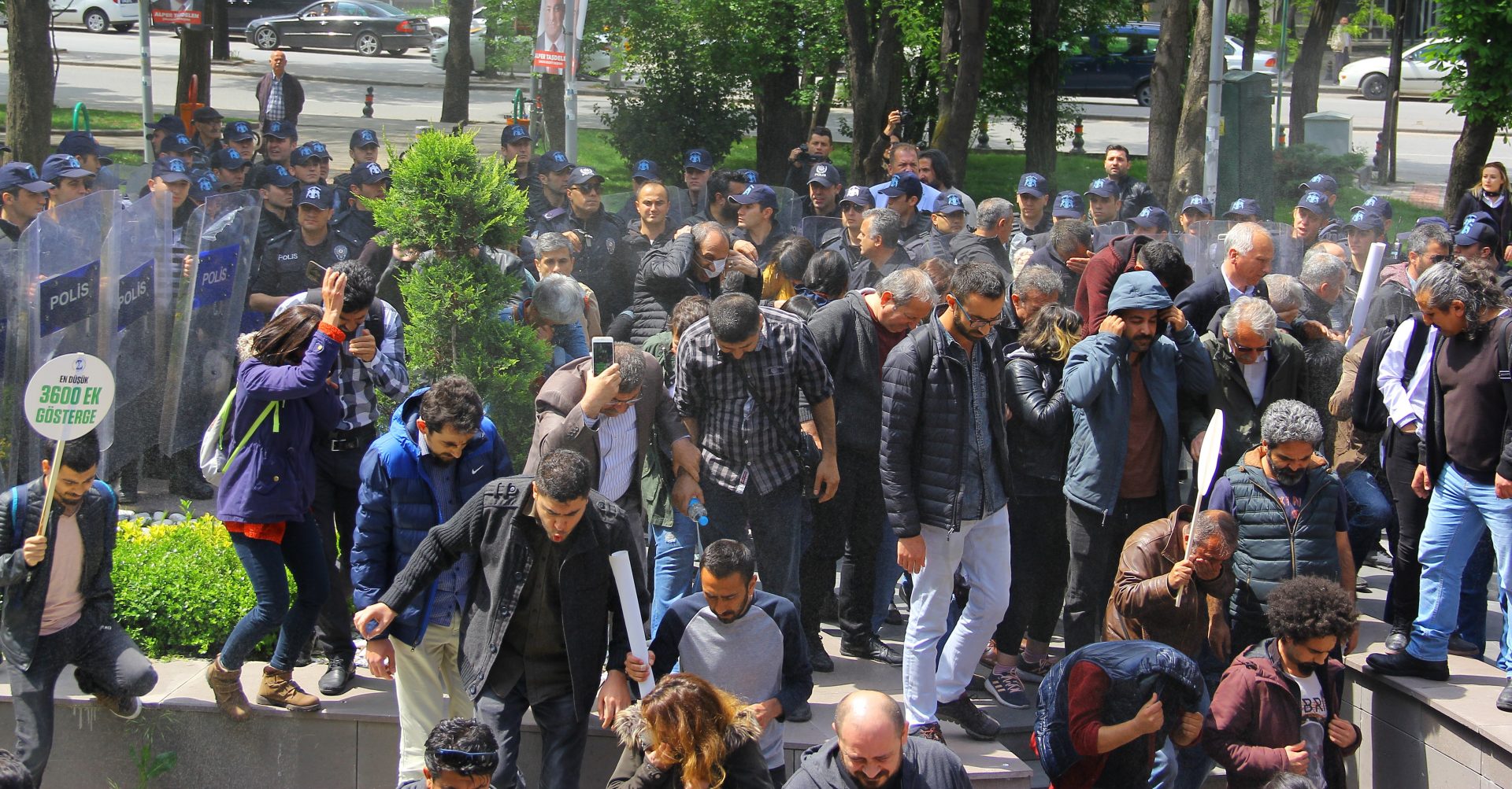 Kolluk güçleri, biber gazı, kalkan ve sert kullanarak sağlıkçıların açıklamasını engelledi. Müdahalede gaz nedeniyle çok sayıda sağlıkçı fenalık geçirirken, SES Eş Başkanı İbrahim Kara ve Dev Sağlık-İş üyesi Furkan Bircan gözaltına alındı.