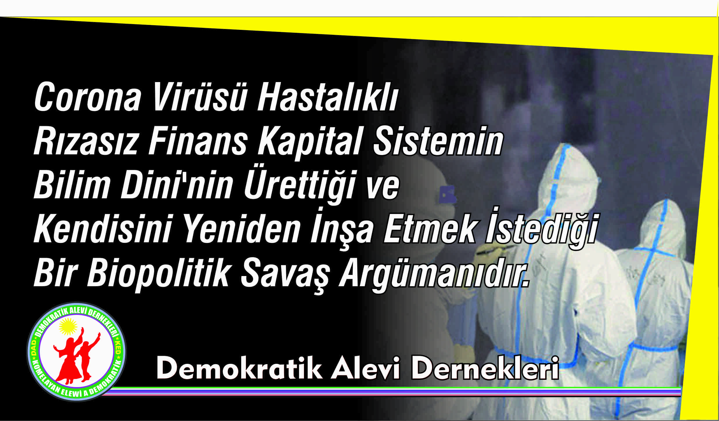 - Koronavirüsü hastalıklı rızasız finans kapital sistemin bilim dininin ürettiği ve kendisini yeniden inşa etmek istediği bir biopolitik savaş argümanıdır.