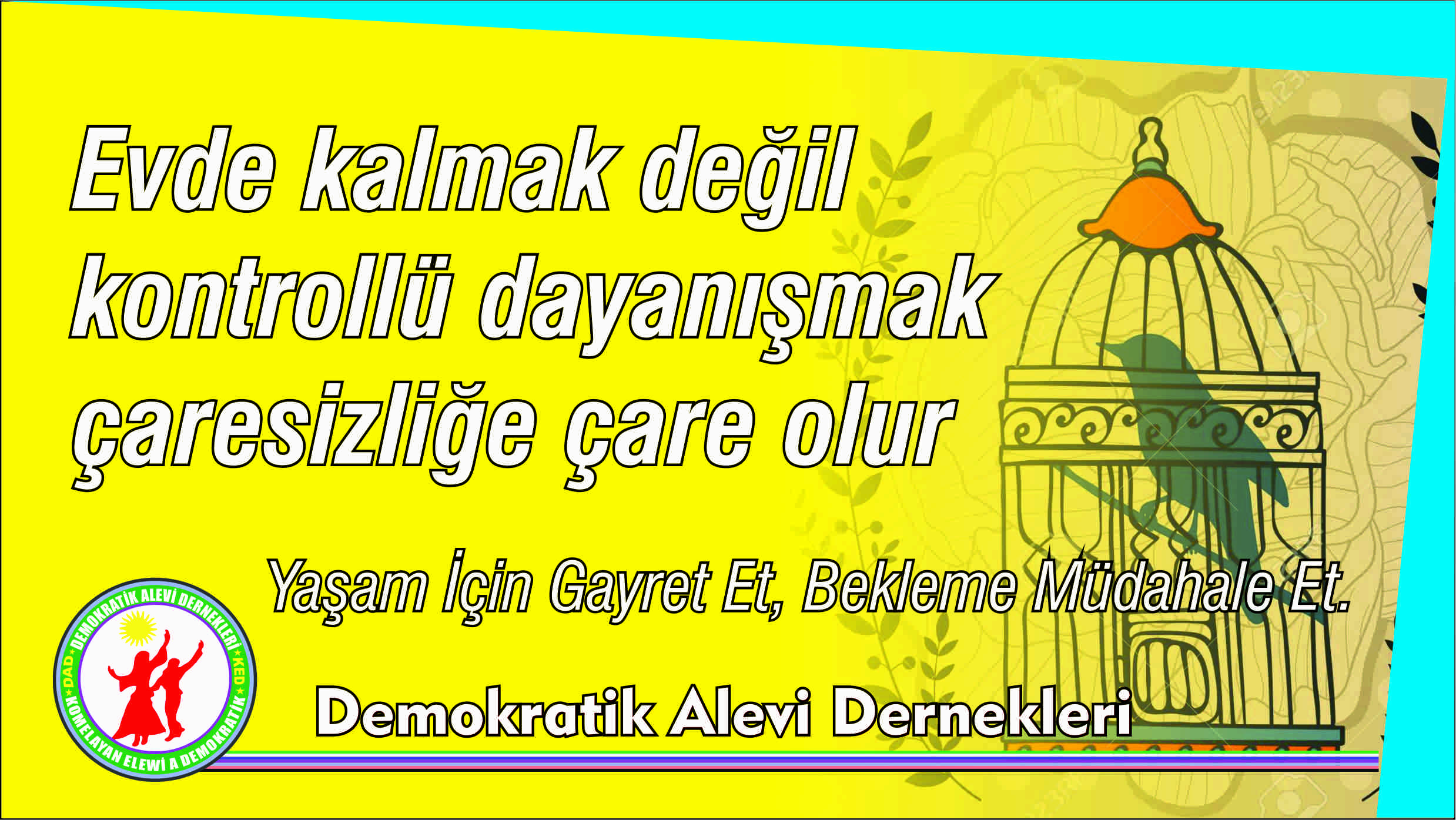 - Demokratik Alevi Dernekleri olarak tüm üyelerimizi ve dostlarımızı toplumsal dayanışmada her alanda aktif rol üstlenmelerini toplumsal direncimiz açısından elzem görüyoruz.