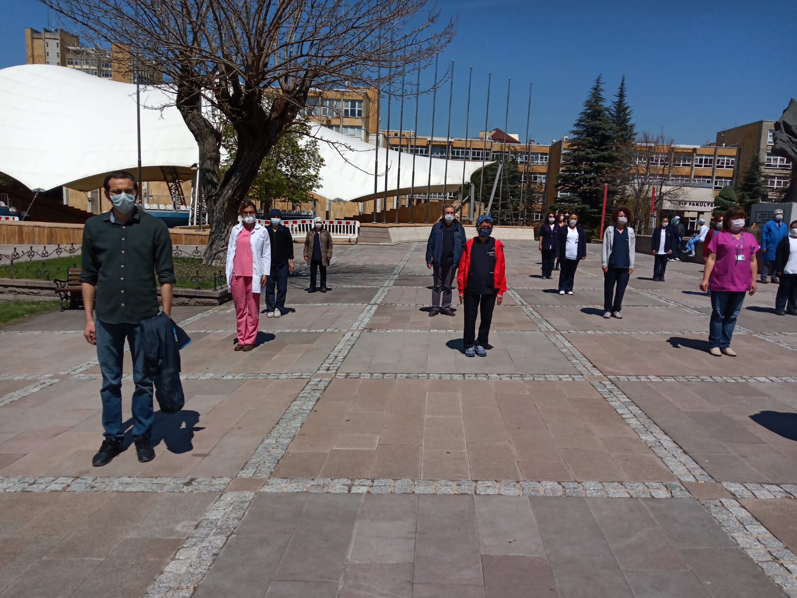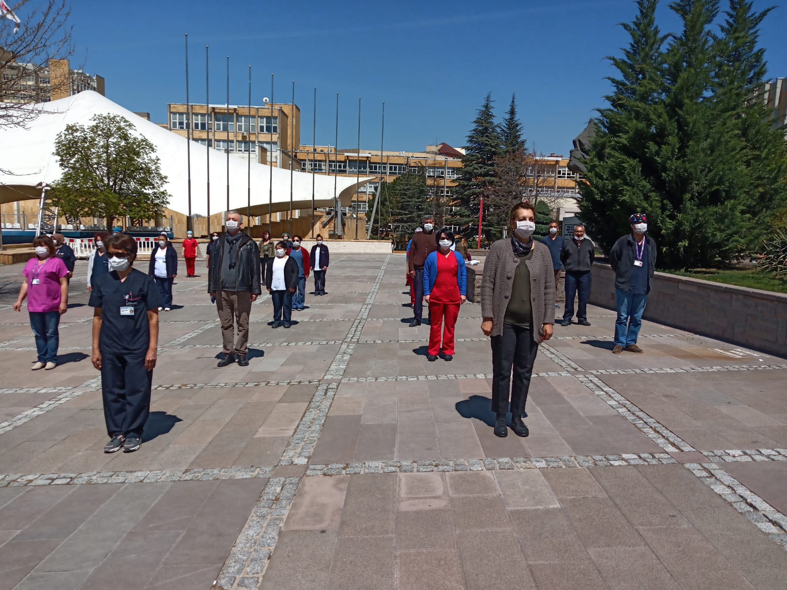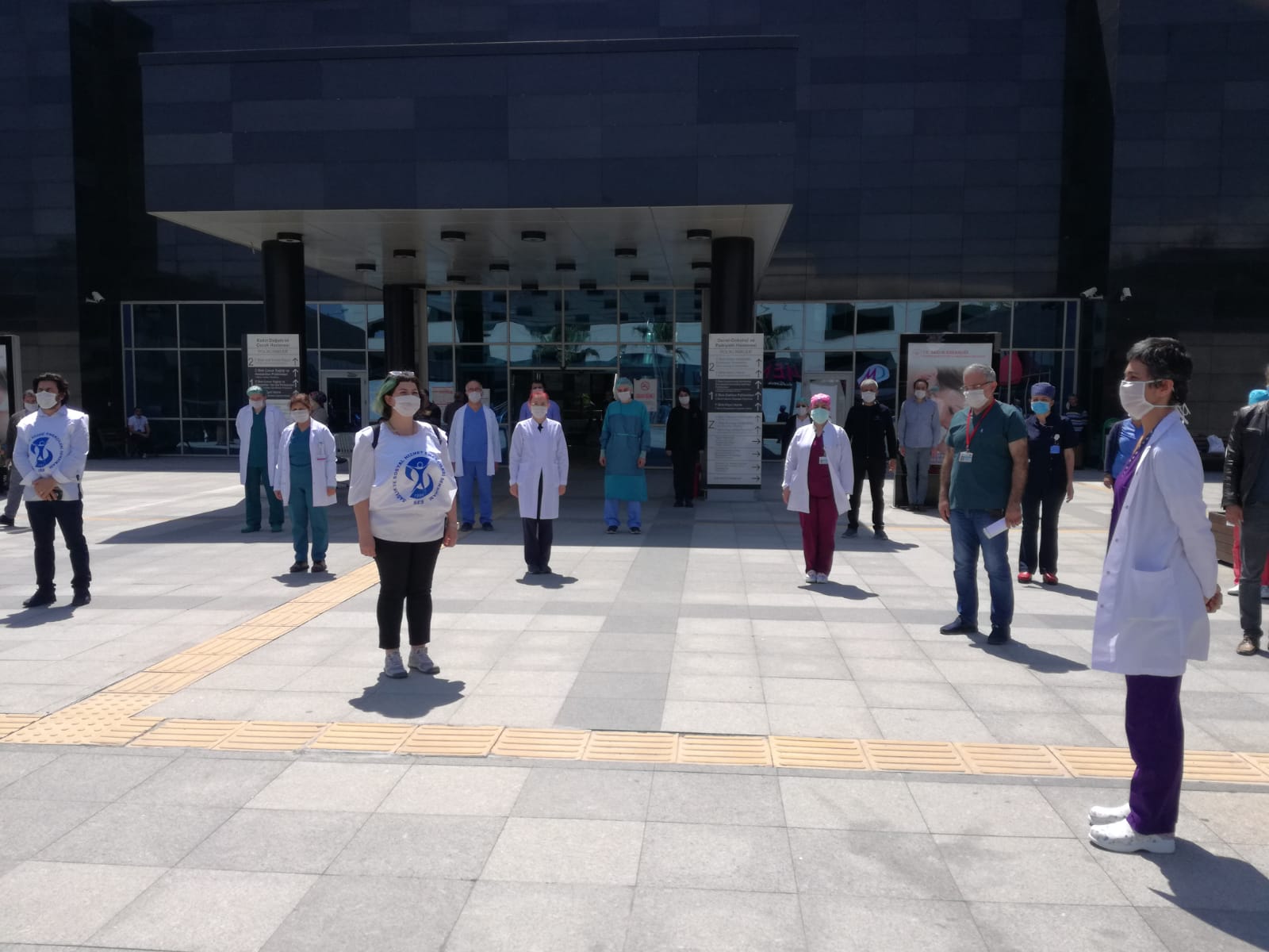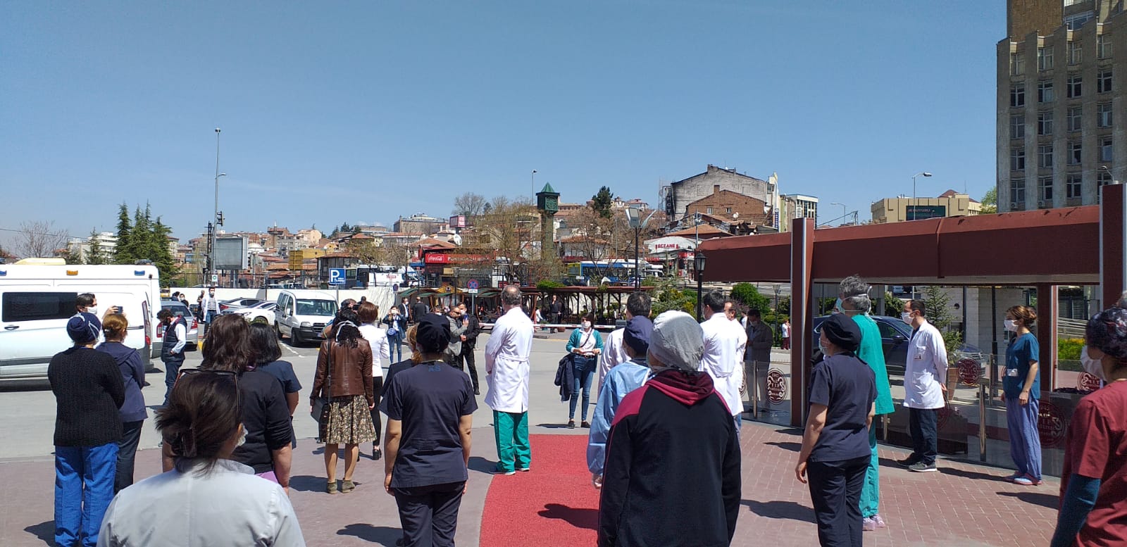Sağlıkta şiddet ve Covid-19 salgını nedeniyle hayatını kaybeden hekimler anılarak, tüm sağlık çalışanlarına destek için 1 dakikalık saygı duruşunda bulunuldu.