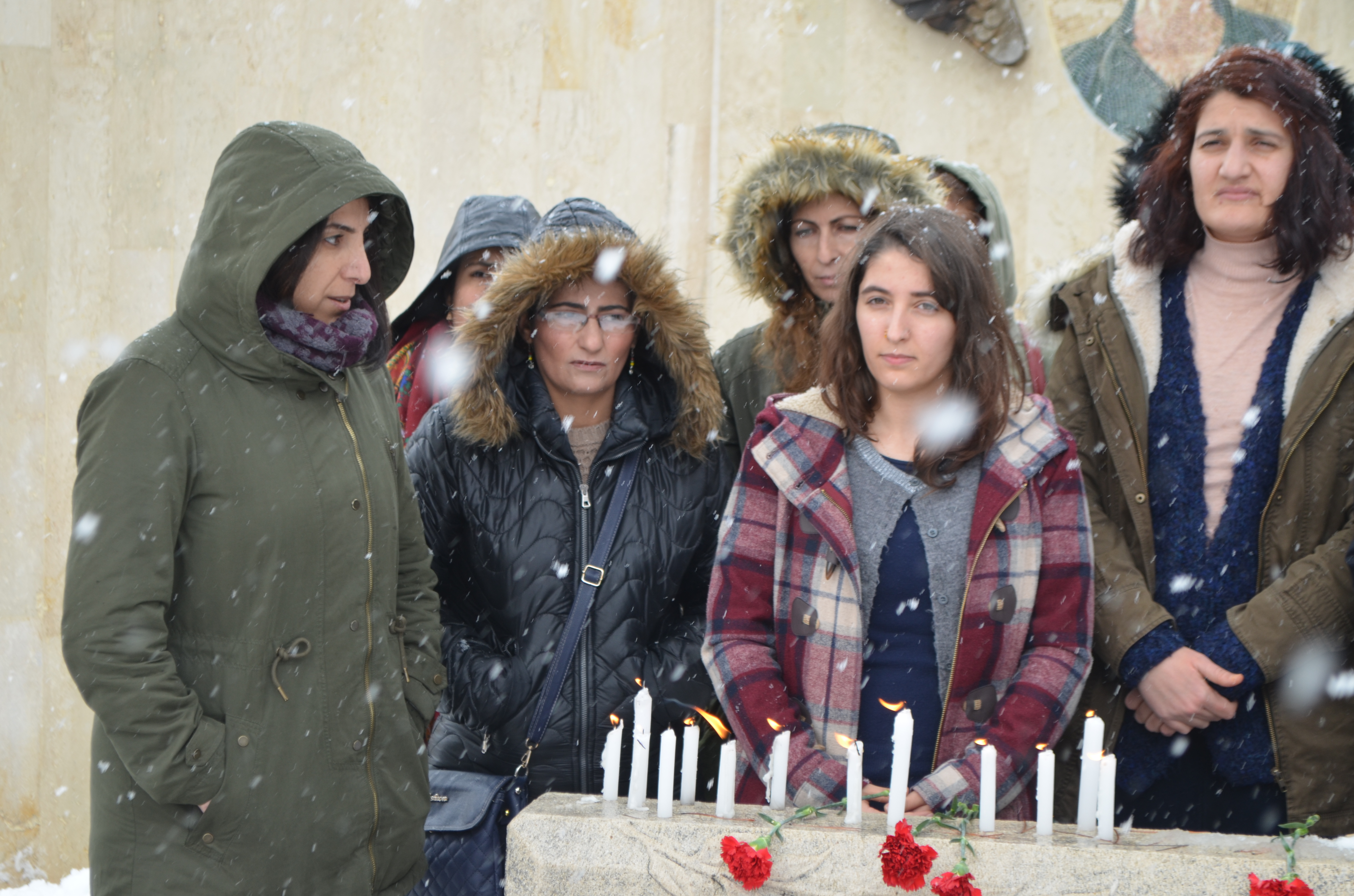 Anmada konuşan TJA aktivisti Ayşe Gökkan, Sakine Cansız, Fidan Doğan ve Leyla Şaylemez’in mücadelelerin yollarına ışık tuttuğunu söyleyerek, sokağa çıkma yasakları döneminde Silopi’de katledilen Demokratik Bölgeler Partisi (DBP) Meclis üyesi Seve Demir, Özgür Kadın Kongresi (KJA) üyesi Fatma Uyar ve Silopi Halk Meclisi Eş Başkanı Pakize Nayır’ı andı.