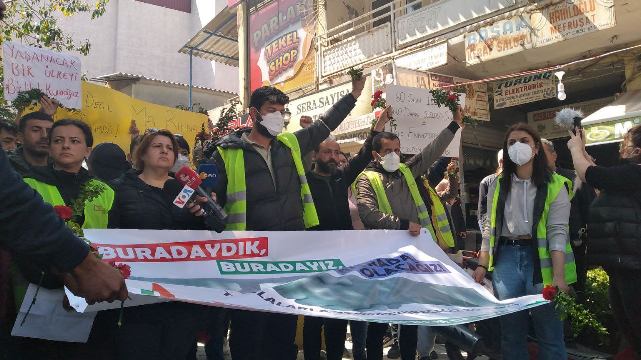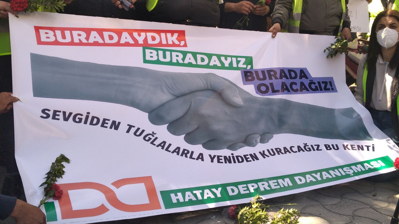 “Bugün depremin 60. Günü hala temel ihtiyaçlarımız çözülmüş değil. Hala halkımızın gıdaya, temiz suya, hijyen malzemesine, sağlık malzemesine, hatta tuvalete ve duşa ihtiyacı var. Bu ihtiyaçların 60 gün içerisinde çözülmemiş olmasının tek sorumlusu hükümettir. Halkımızı bir lokma ekmeğe, bir yudum suya muhtaç edenlerden hesap soracağız. Bölgemize yardım gelmediği gibi, sorunlar çözülmediği gibi, hayatımıza her gün yeni sorunlar ekleniyor. Enkaz kaldırma işlemleri dikkatsiz yapılıyor. Enkazlardan çıkan molozlar yaşam alanlarına yakın yerlere, tarlalarımıza ve meyve bahçelerimize dökülüyor. Bu enkazların yaratacağı sağlık sorunları var. Toz ve asbest görmezden geliniyor. Depremde can vermeyenler, hastalıklarla boğuşmak zorunda kalıyor. Yetkilileri uyarıyoruz! Bu hatalı uygulamalardan vazgeçin. Biz buradayız ve burada yaşamaya devam edeceğiz. Toprağımızı terk etmeyeceğiz. Unutmayacağız, affetmeyeceğiz, hesap soracağız, helalleşmeyeceğiz. Son olarak tüm halkımızı önümüzdeki bayramda, acımızı paylaşmaya, bir acı kahvemizi içmeye Hatay’a bekliyoruz. Gelin bu bayramı birlikte karşılayalım.