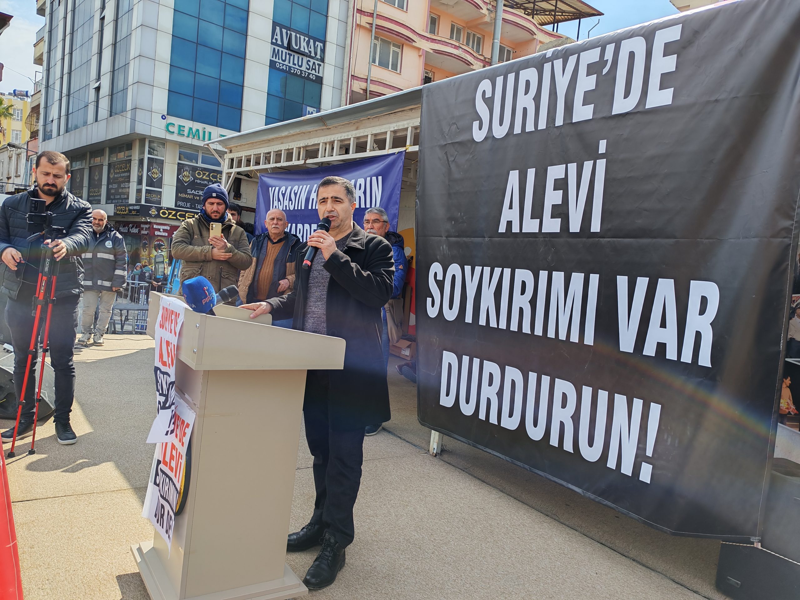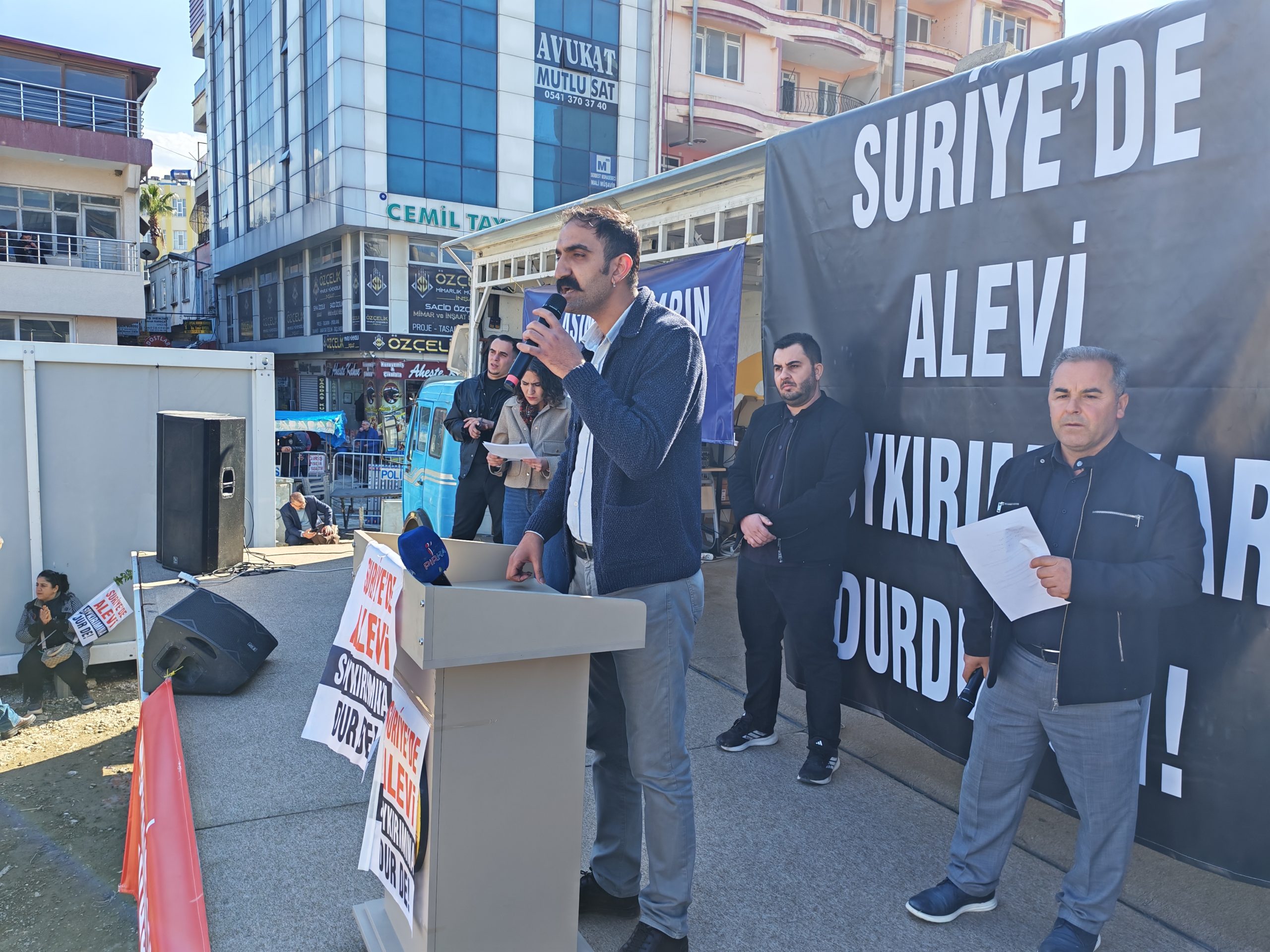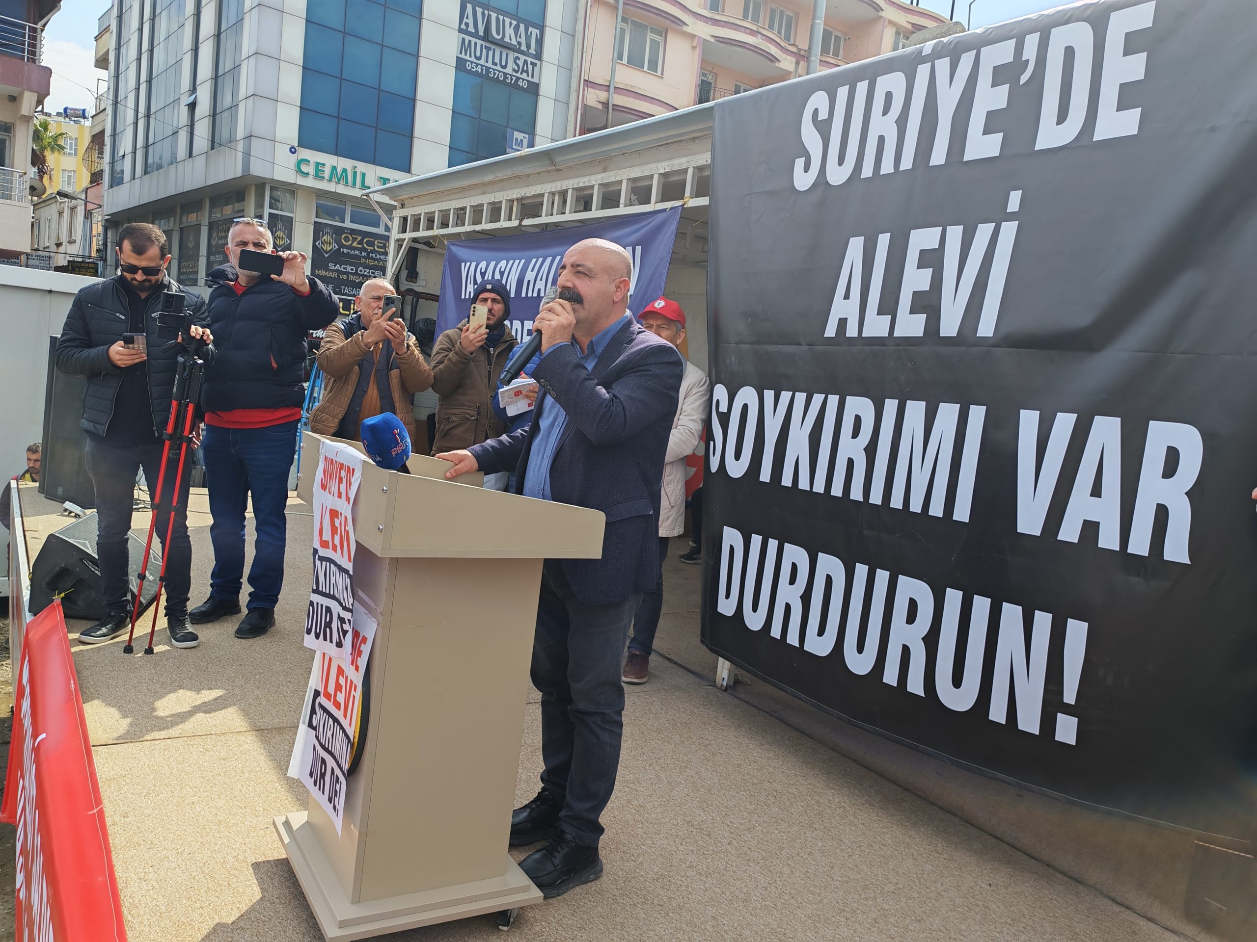 Paylaş Samandağ’da Suriye’deki Alevi soykırımına karşı ses yükseltmek için “Suriye’de Soykırıma Dur De” mitingi yapılıyor. PİRHA/SAMANDAĞ Önceki 1 24 Sonraki Okumaya devam et 7 martalevi soykırımısamandağSuriye Paylaş